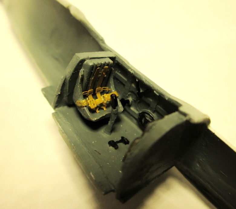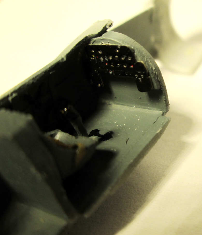 Трям! Сегодня сделал кабинет, долго не заморачивался, взял выштамповки от "Эдуард" и прямо по ним выпилял все детали. Травление "АМЛ", приборная доска "Яху-моделз". Половинки фюзеляжа склеил.