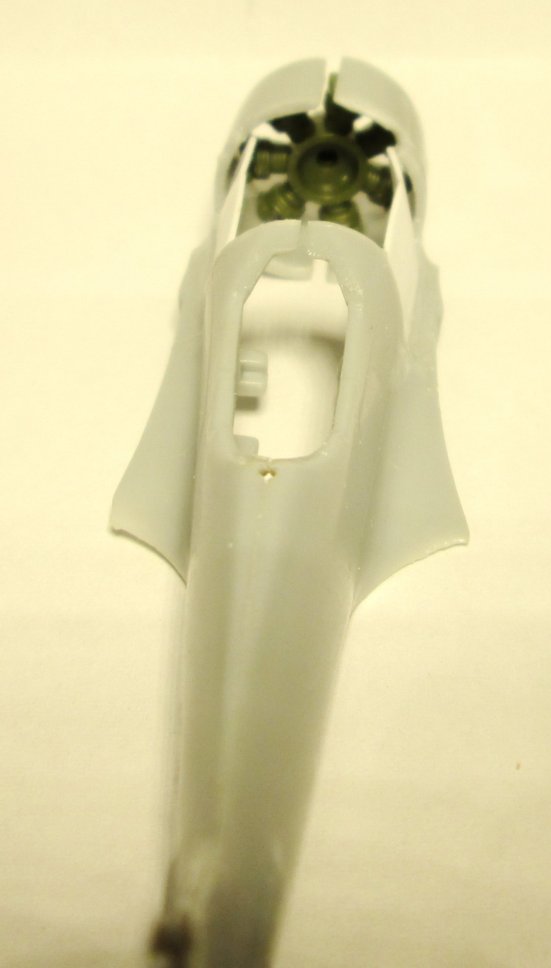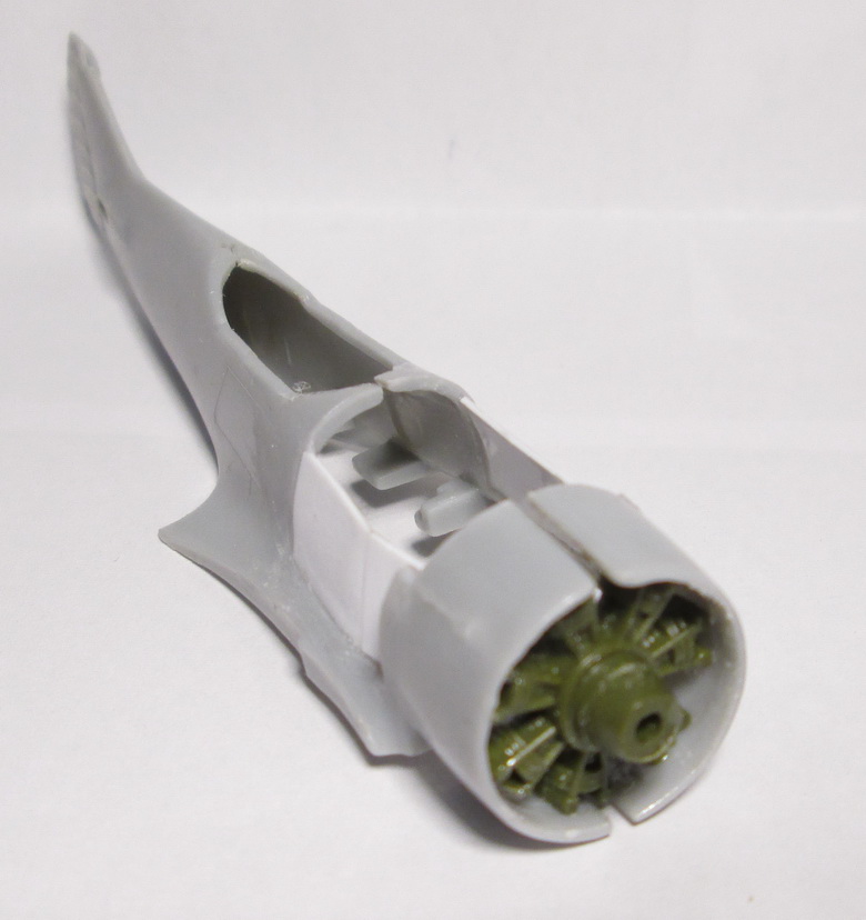 Первое, что сделал, вырезал капот двигателя и жаропрочные листы. Вставил "звезду" от Ла-5 ФН и сразу стало видно, насколько нужно исправлять сечение фюзеляжа.