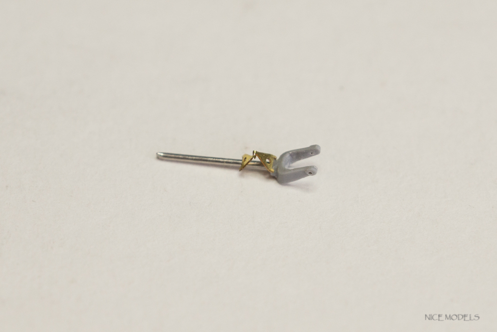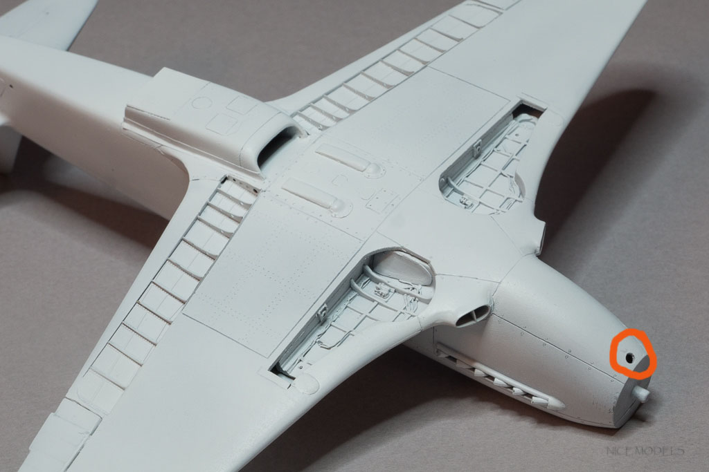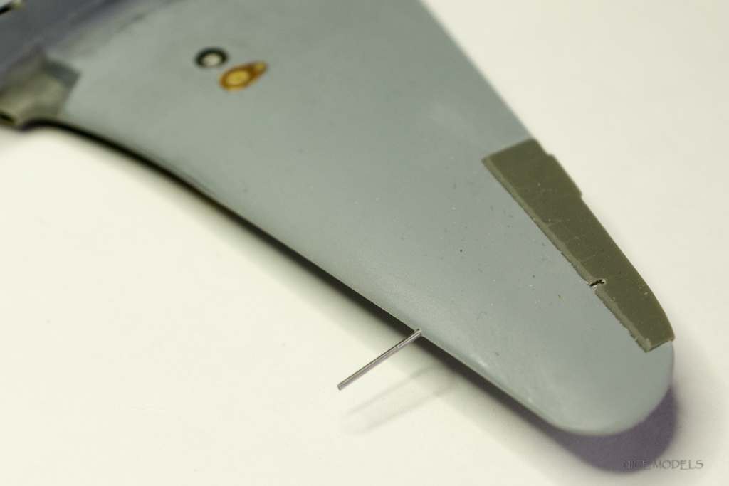 А ПВД получится красивее если сделать так. Надо две иглы с отверстиями 0.7 и 0.5. Кусок толстой иголки вклеиваете в крыло и спокойно красите в камуфляжный цвет, а тонкий вставляете уже после окраски, дабы кончик остался полированная сталь.