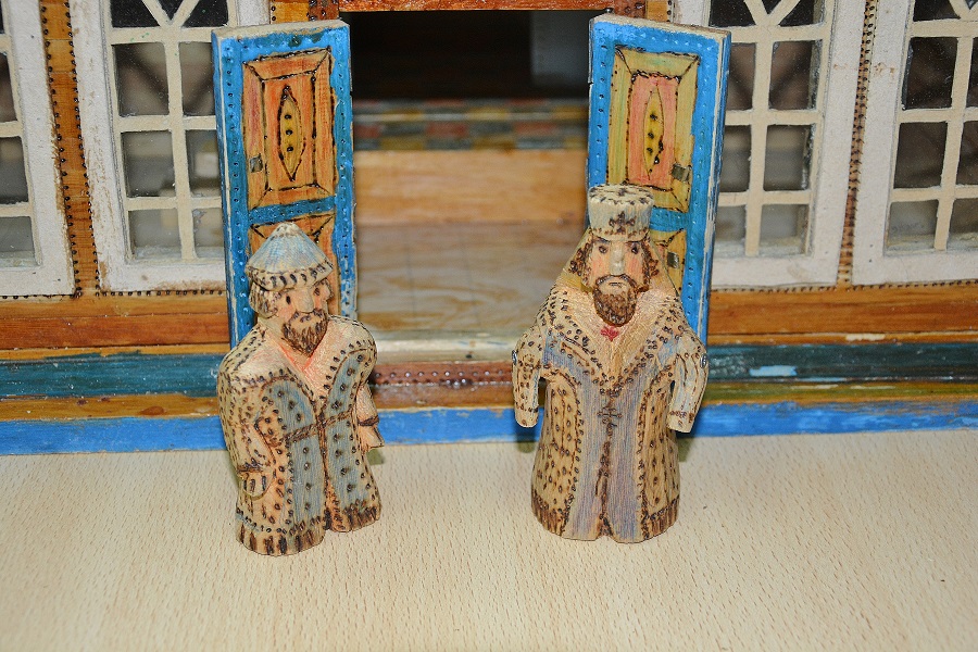 Есть и Поп-Толоконный лоб, и бородатая попадья, и служивый человек-звонарь. Макет - Интерактивный! Открываются двери а во внутрь ставится специальный подсвечник, окошки светятся, наверное это выглядит очень миленько в темноте.