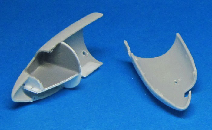 Работу продолжу с носовыми частями: закрою ниши шасси, сделаю кабину и склею половинки.