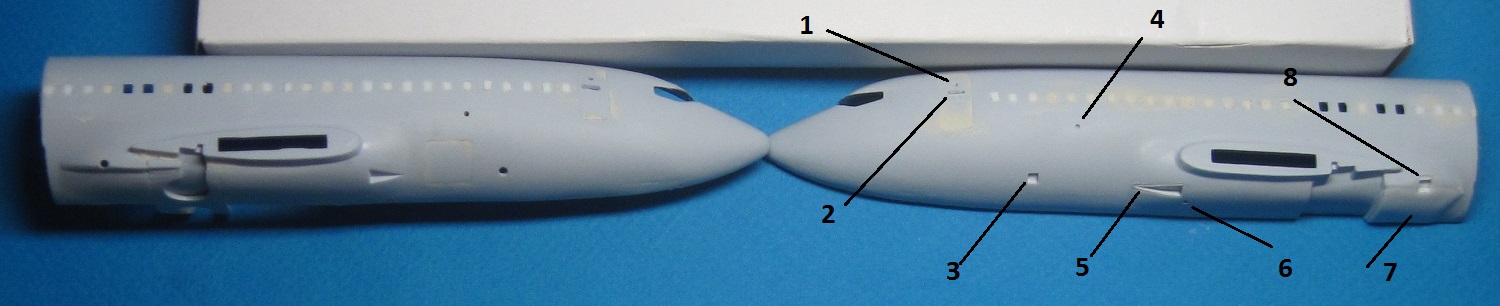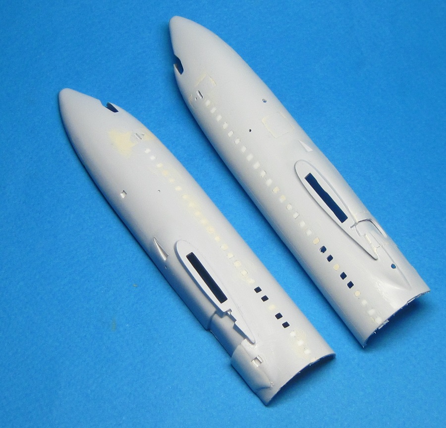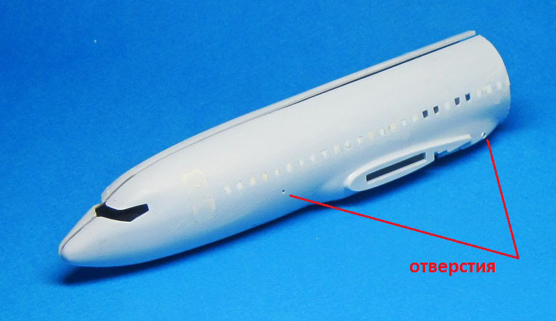 В этом проекте работ в фюзеляжем будет меньше. Модель короче прототипа лишь на 1 см. Поэтому вставка будет только перед центропланом. Придётся заделывать иллюминаторы и делать самодельные движки.