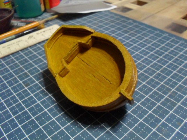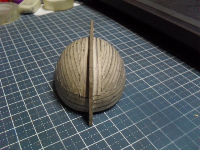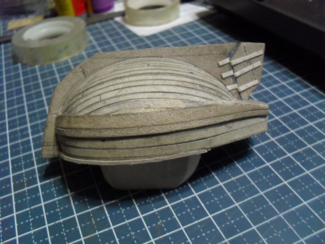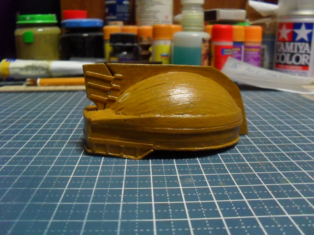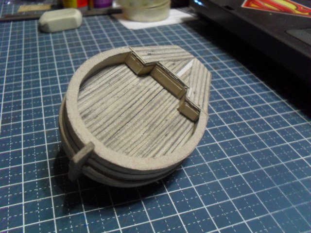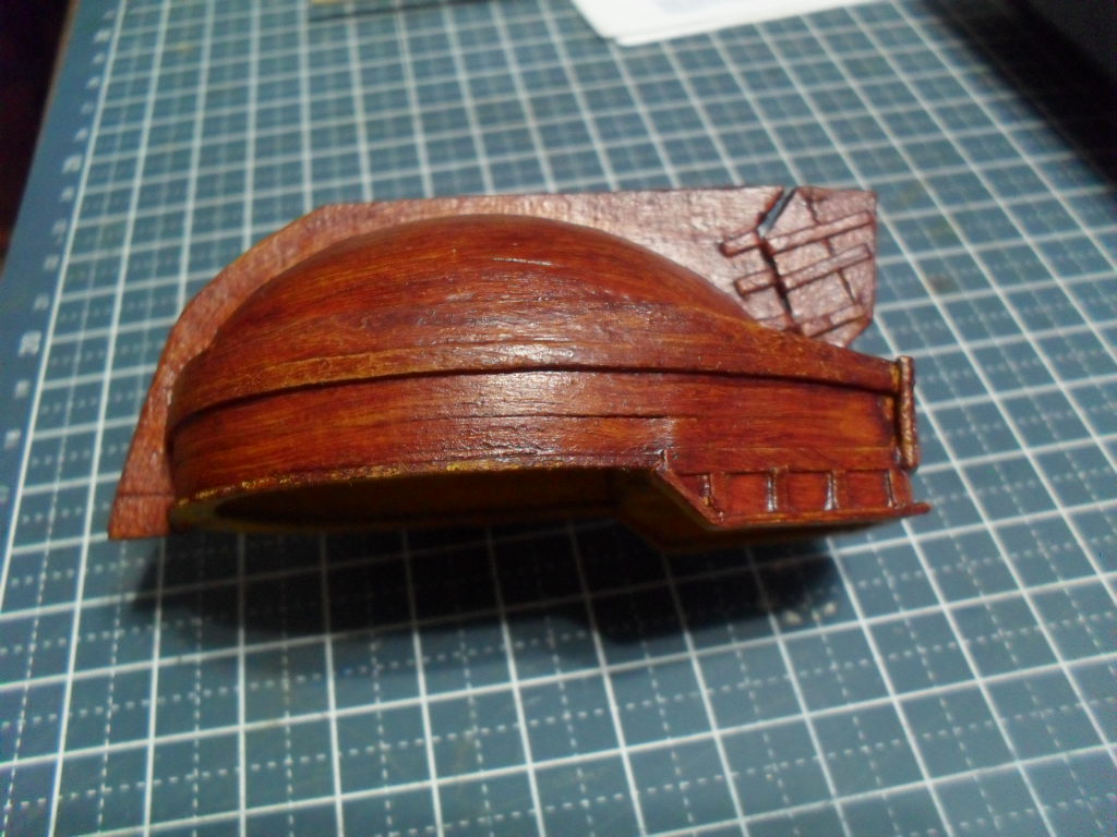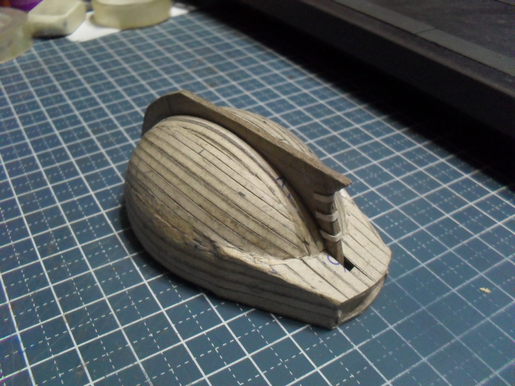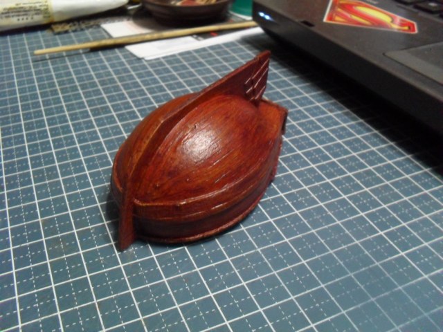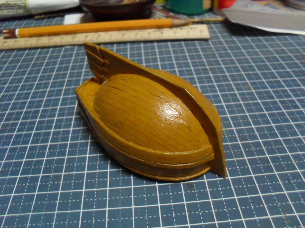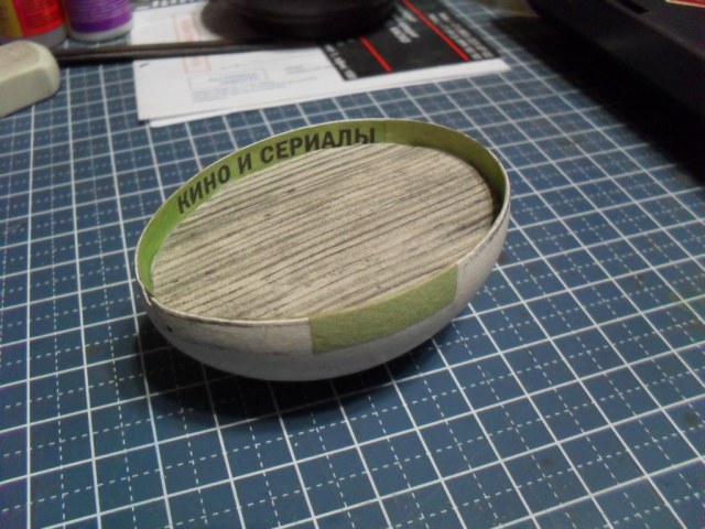 Распилил, смыл газету, заполнил заготовку баластом, наклеил палубу.