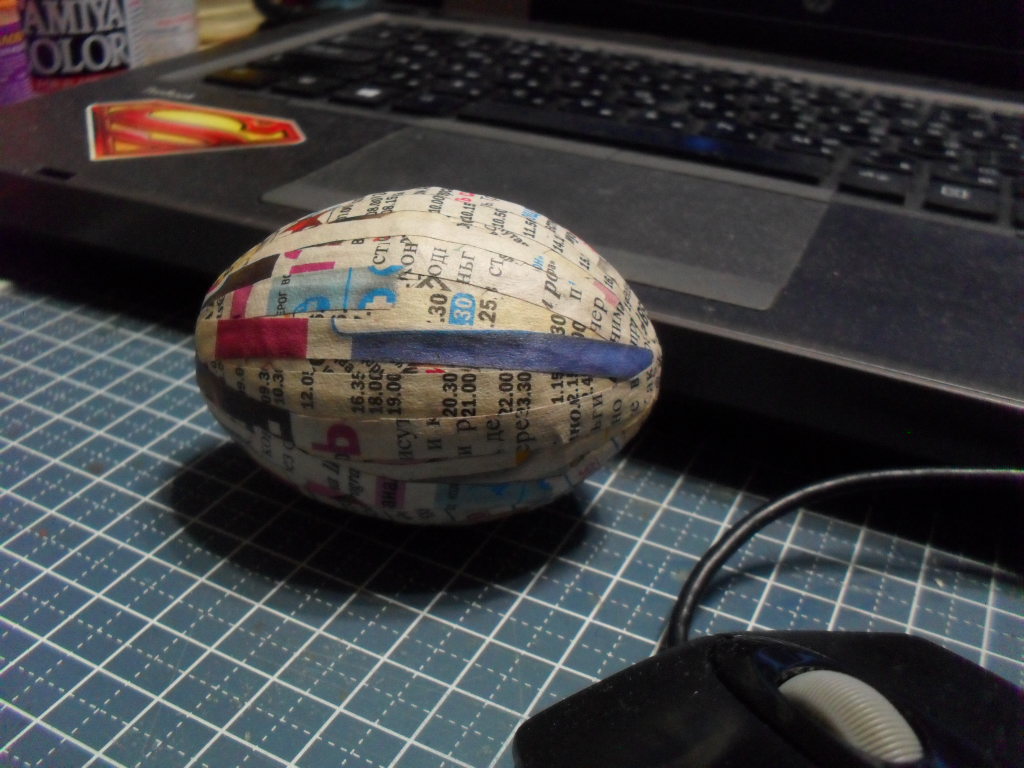Подготовка заготовки уже стандартная. Скушал яичко, оклеил скорлупу газетой пропитанной ПВА