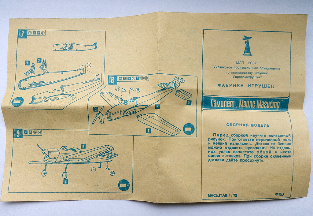 У папы нашлось несколько таких самолетов и я выбрал английский учебно-тренировочный самолет Майлс Магистр. Прикольная коробка, судя по надписи он стоил 45 копеек