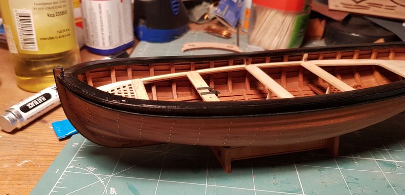 Красиво получается! А в какой цвет будут покрыты уключины? Планширь черный, черные уключины будут "слегка" незаметными на планшире.