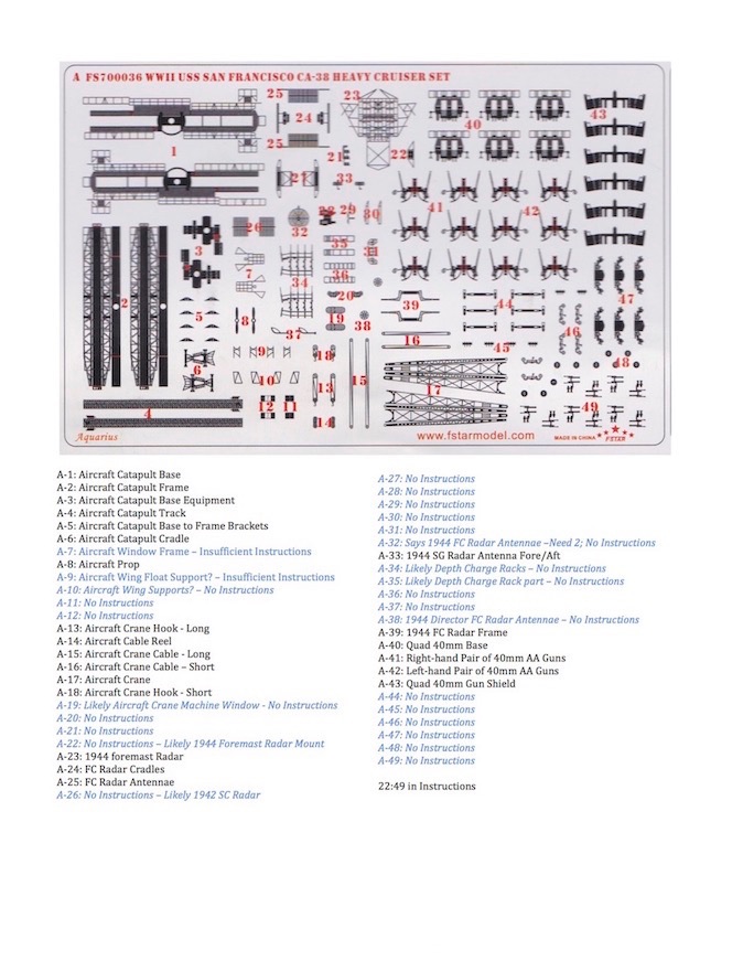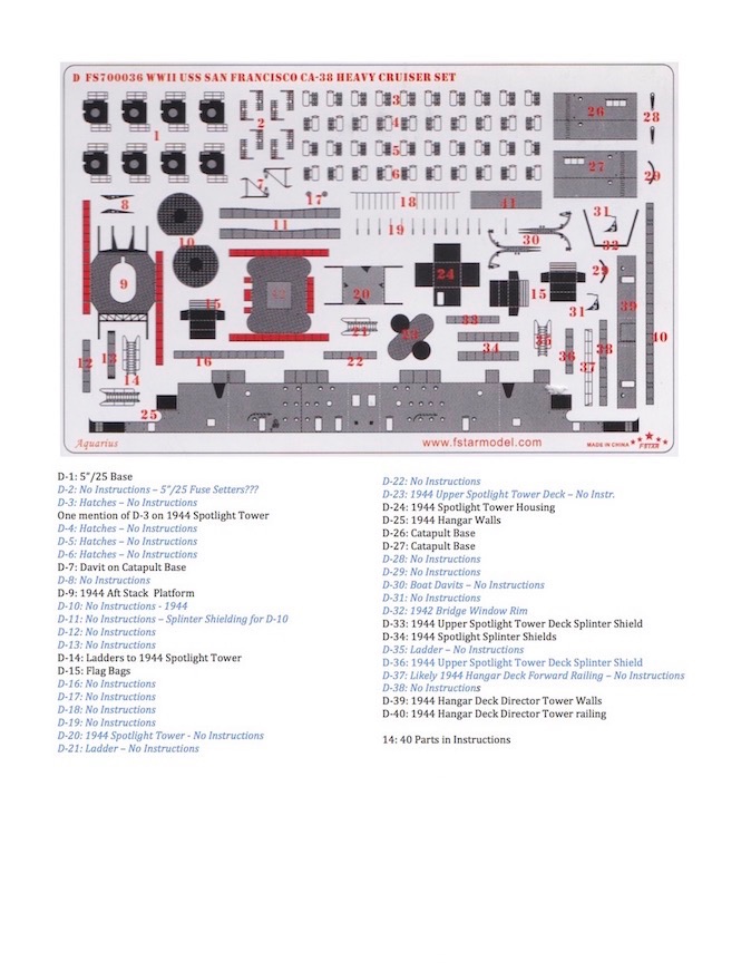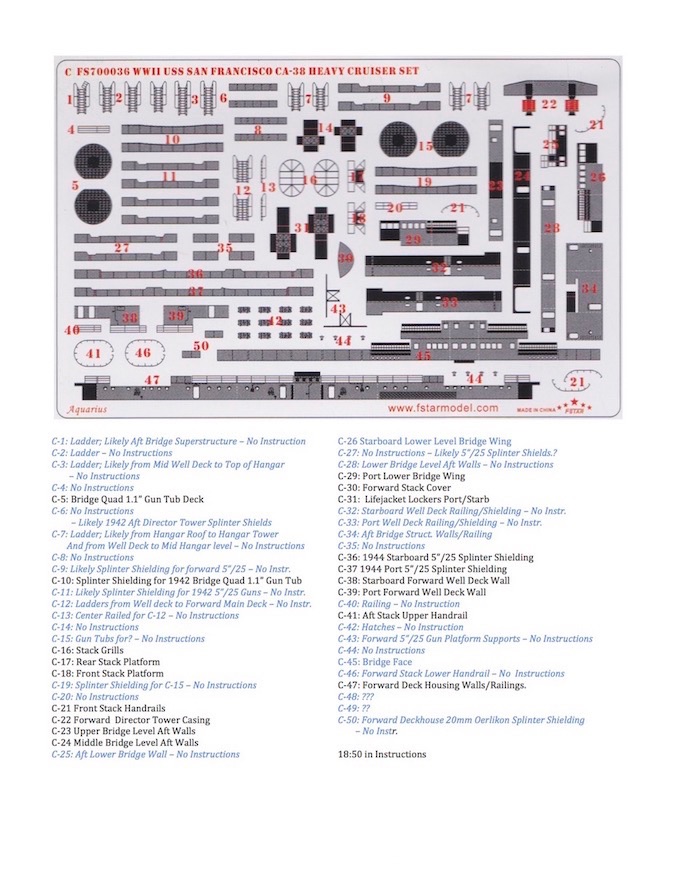 Сперва пару слов о травлении от фирмы Five star FS700036 для модели от фирмы Trumpeter,которое я когда-то давно прикупил специально для данной модели. Само травление можно использовать (как заявлено производителем) при постройке моделей с артикулами 05746 & 05310(это модели San Francisco на 1942 и 1944 года соответственно).