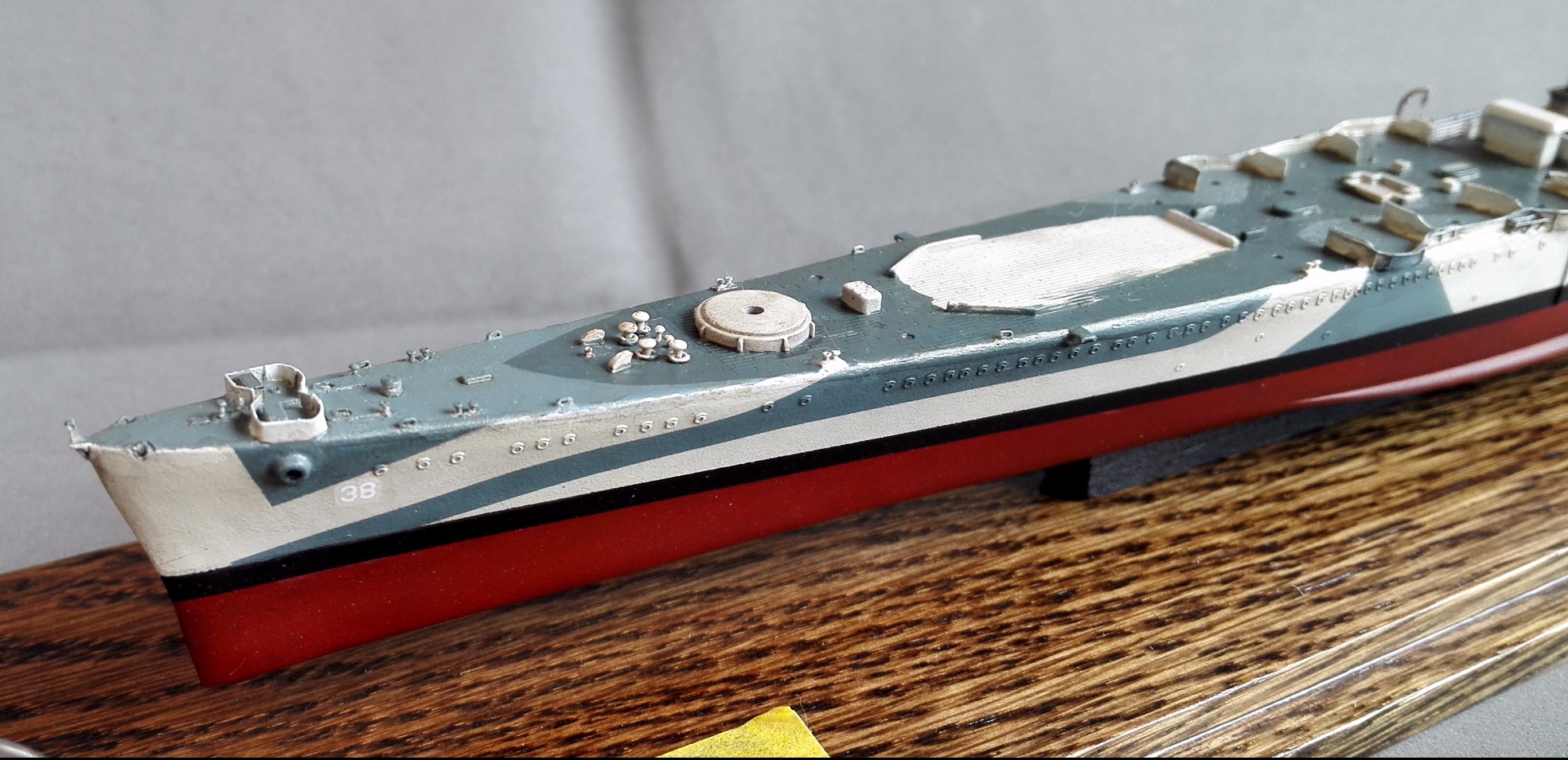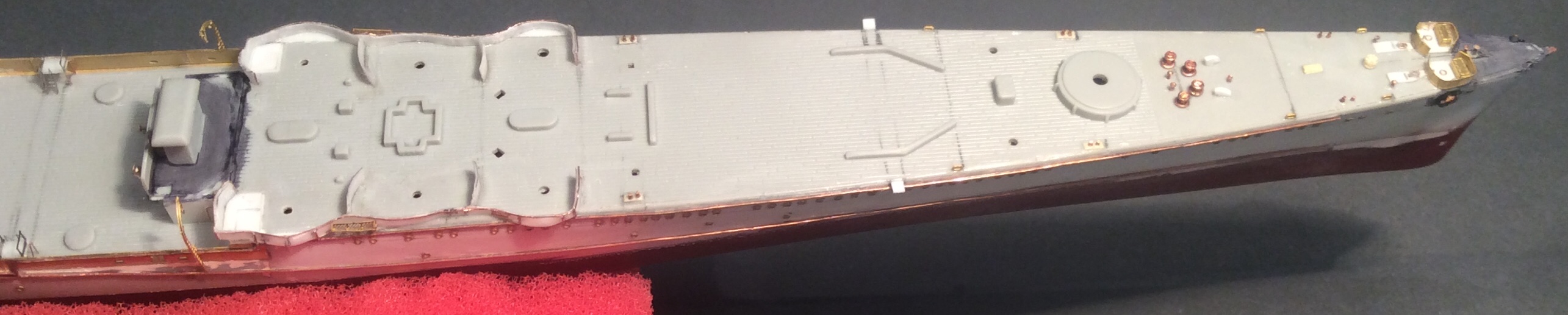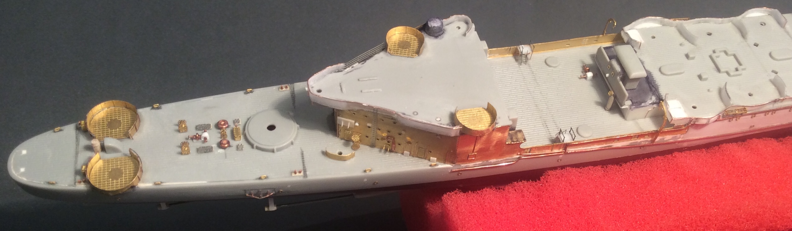 Добрый вечер,товарищи. Последние месяцы очень мало времени удаётся выделять на модель,но работа над крейсером все же ведётся. На данный момент сформирована и окрашена носовая надстройка,но фотографии пока выложу,так сказать,в процессе ее доработок.