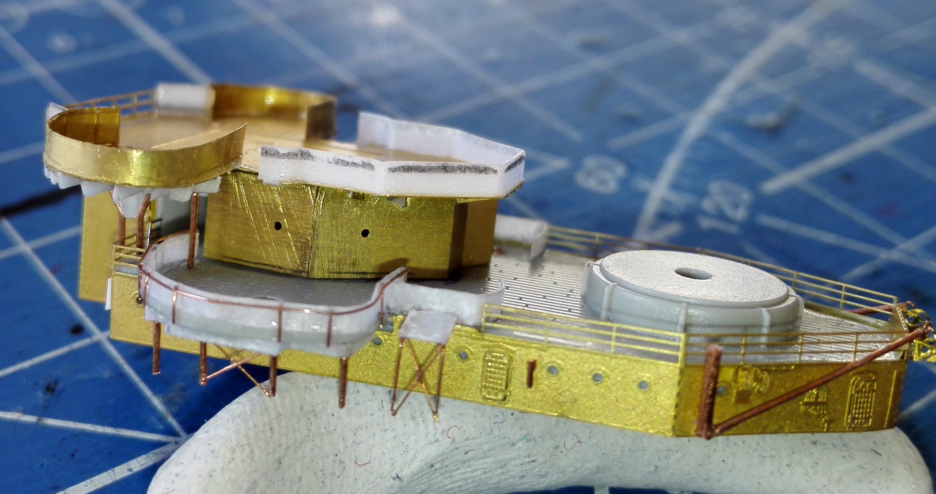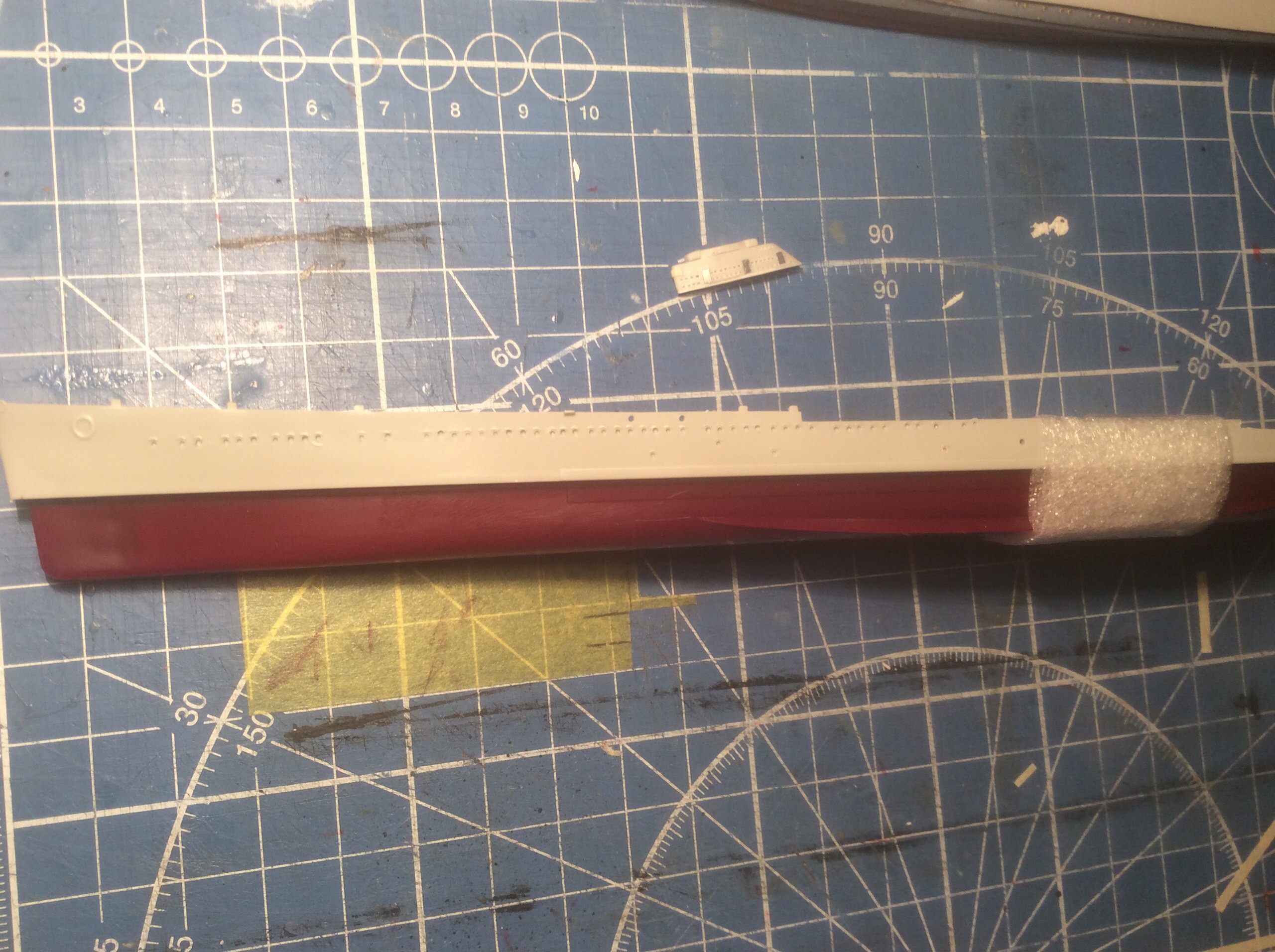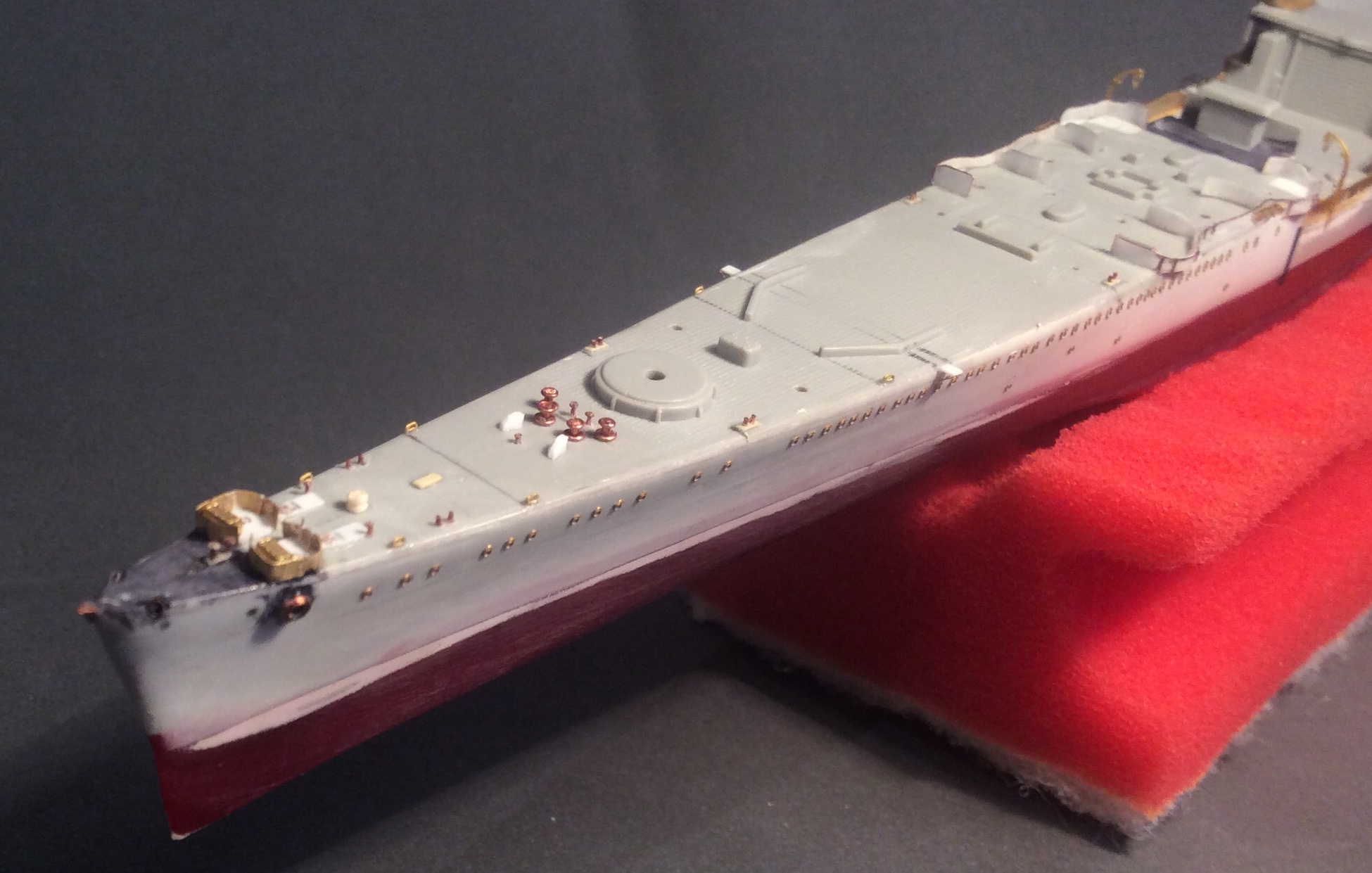Добрый вечер,товарищи. Последние месяцы очень мало времени удаётся выделять на модель,но работа над крейсером все же ведётся. На данный момент сформирована и окрашена носовая надстройка,но фотографии пока выложу,так сказать,в процессе ее доработок.