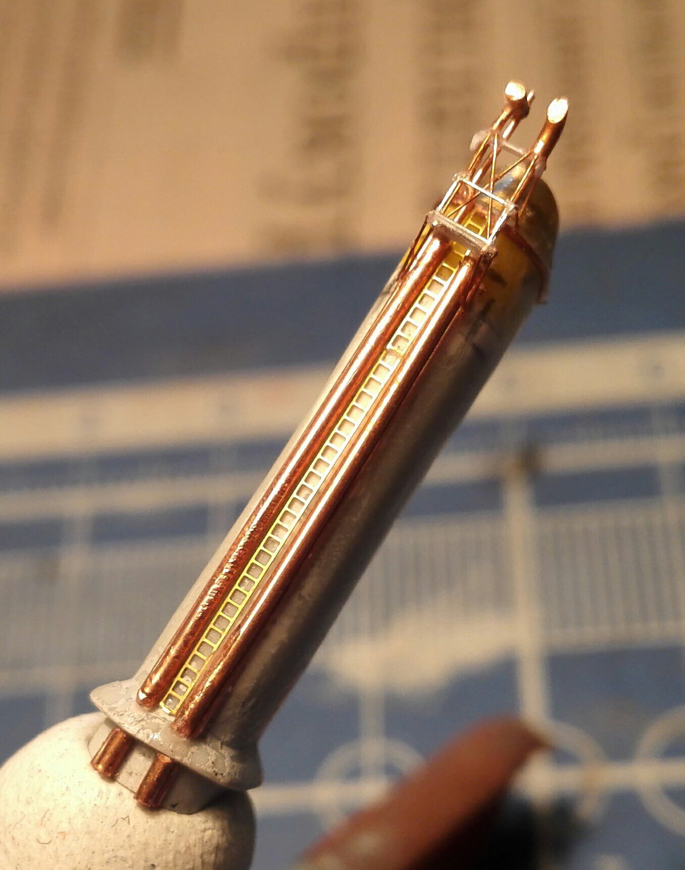 Добрый вечер,товарищи. Хоть и очень-очень медленно,но работа над корытом ведётся. На данный момент уже сделан кран и почти доработаны обе дымовые трубы. То,что даётся трубачом и травлением от Five star мне совсем не понравилось и я решил максимально доработать своими не самыми прямыми рученками. Собственно,результаты перед Вами.