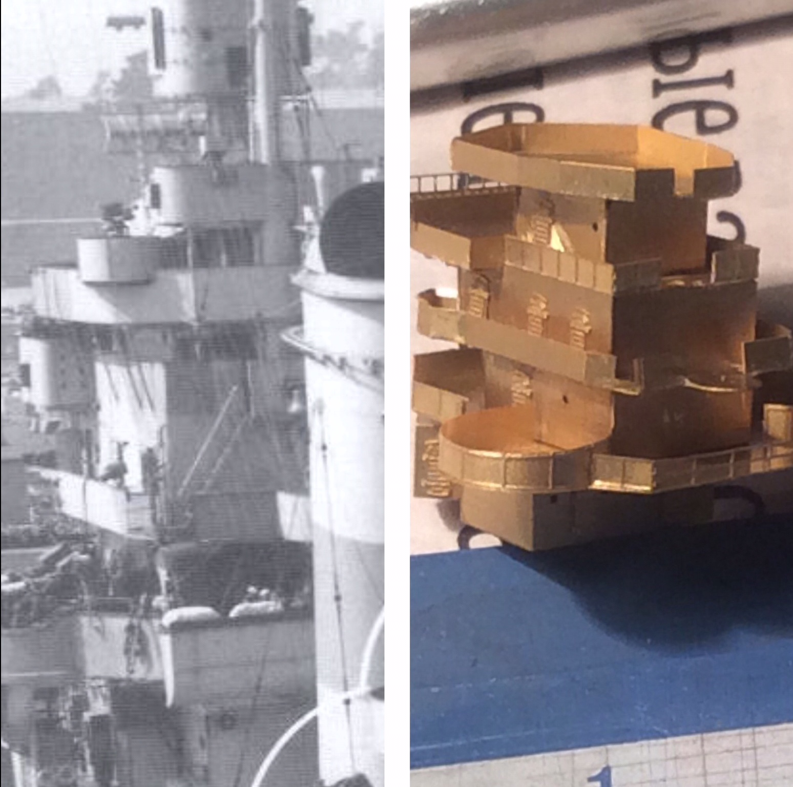 и там другая проблемка нарисовалась с башней В. Суть в том,что надстройка расположена слишком близко к башне В и сильно ограничивает углы поворота. И я не могу понять,это мой косяк или все же производителя фототравление.