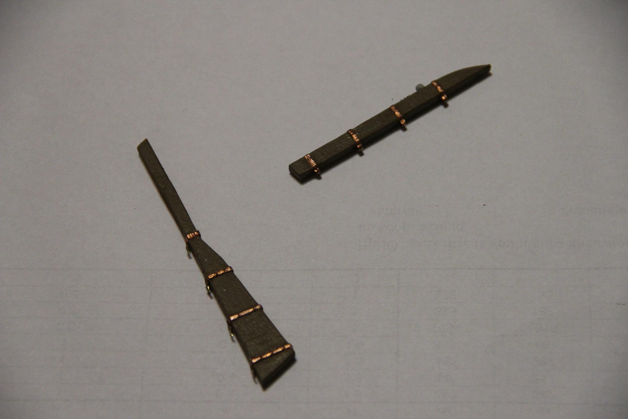 Вант-путенсы из набора короче положенного примерно на 1,5-2мм . Я полагаю ты будешь делать свои, просто на корпусе есть установочные отверстия под них. Этот вопрос лучше решить перед покраской. Лично я оставил отверстия и плясал от них к русленям.