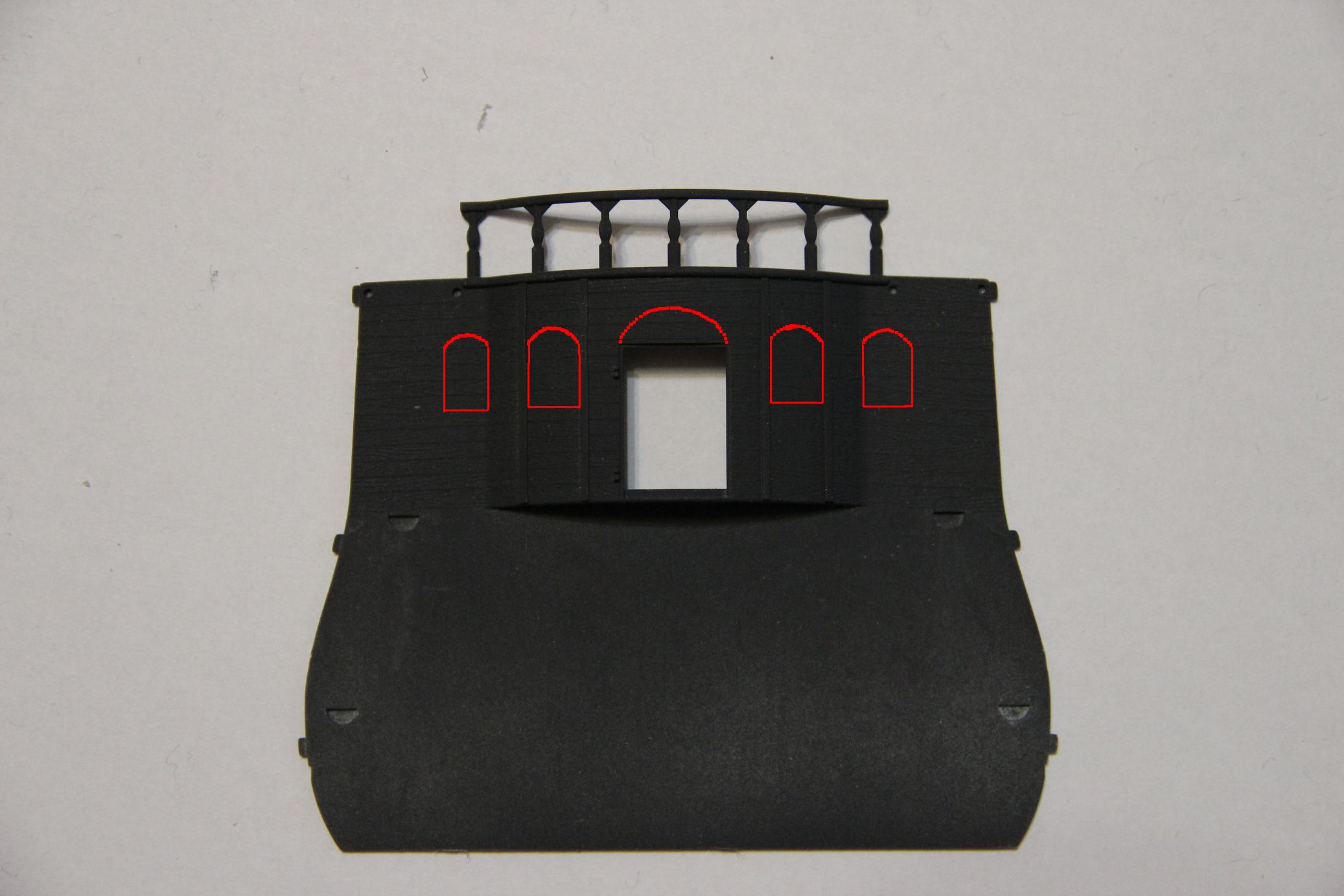 Крыша кормовой галереи стыкуется не очень хорошо, появляются зазоры на углах.