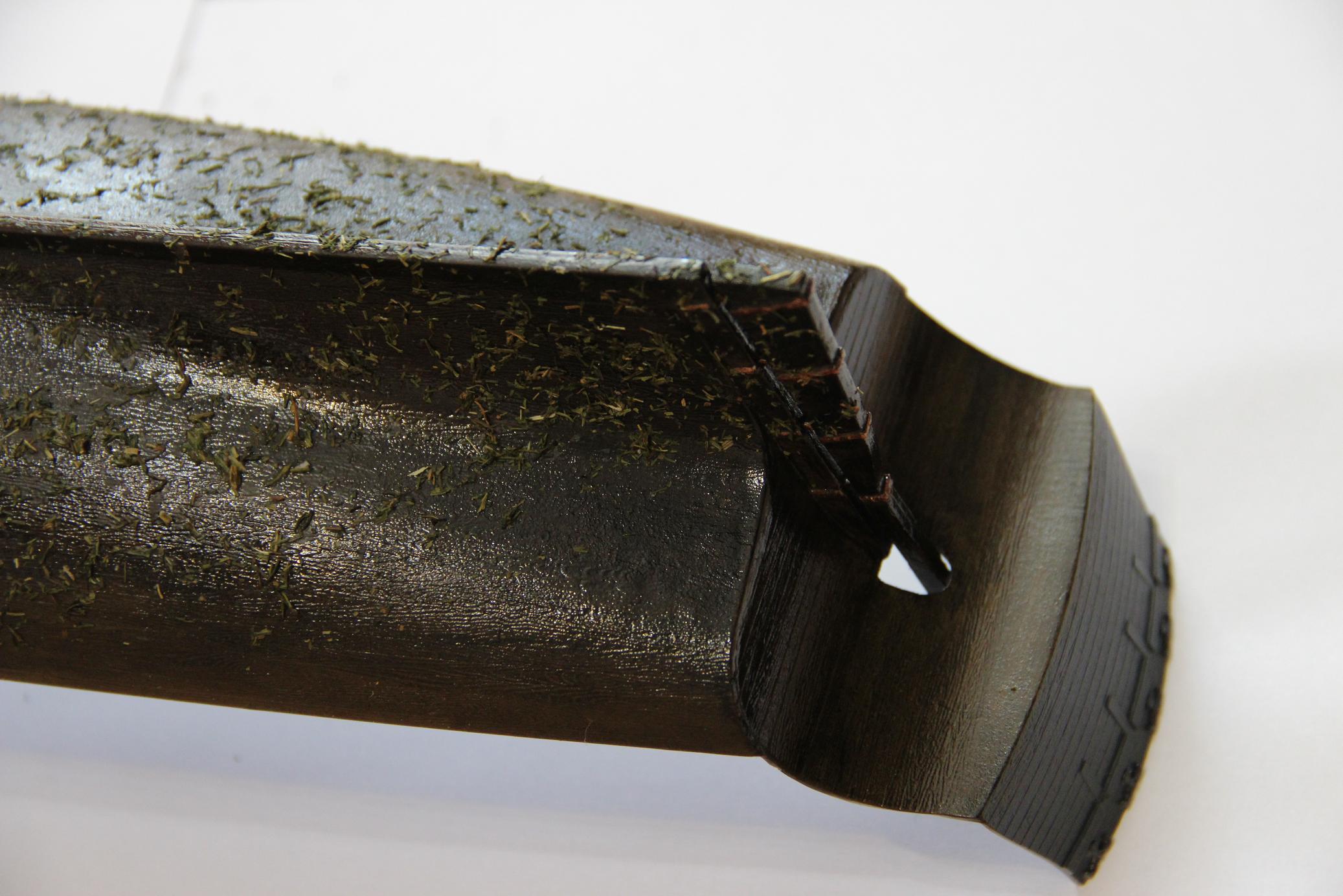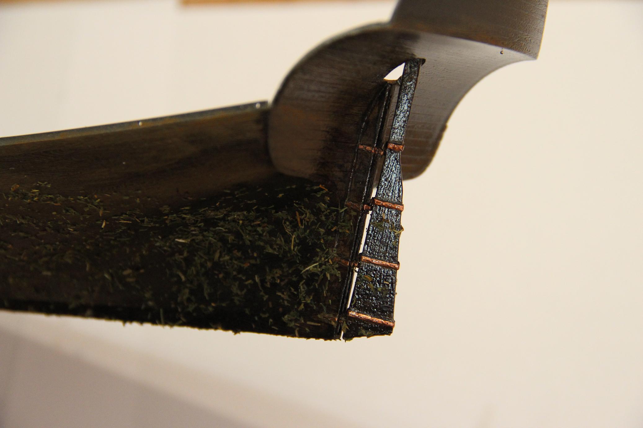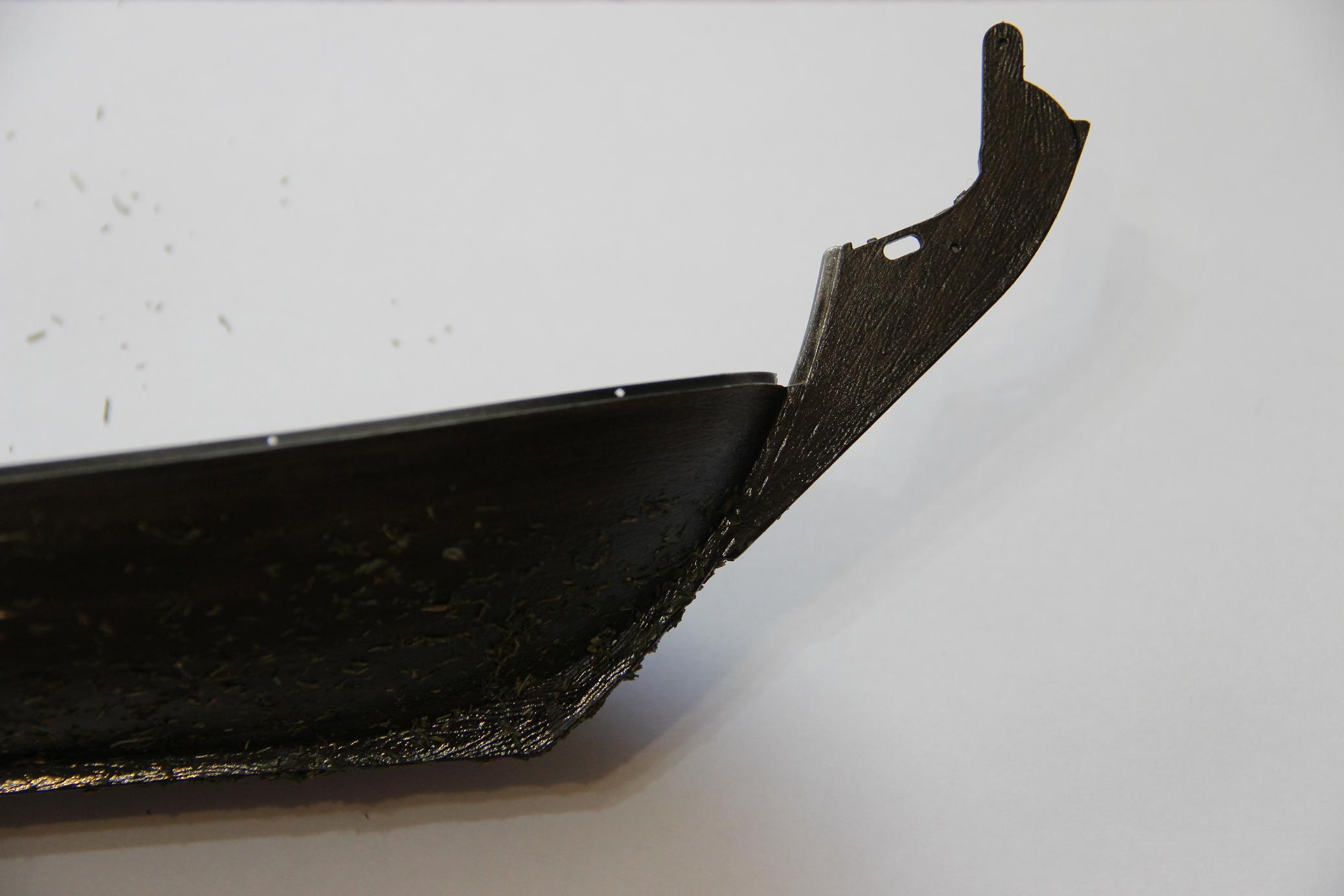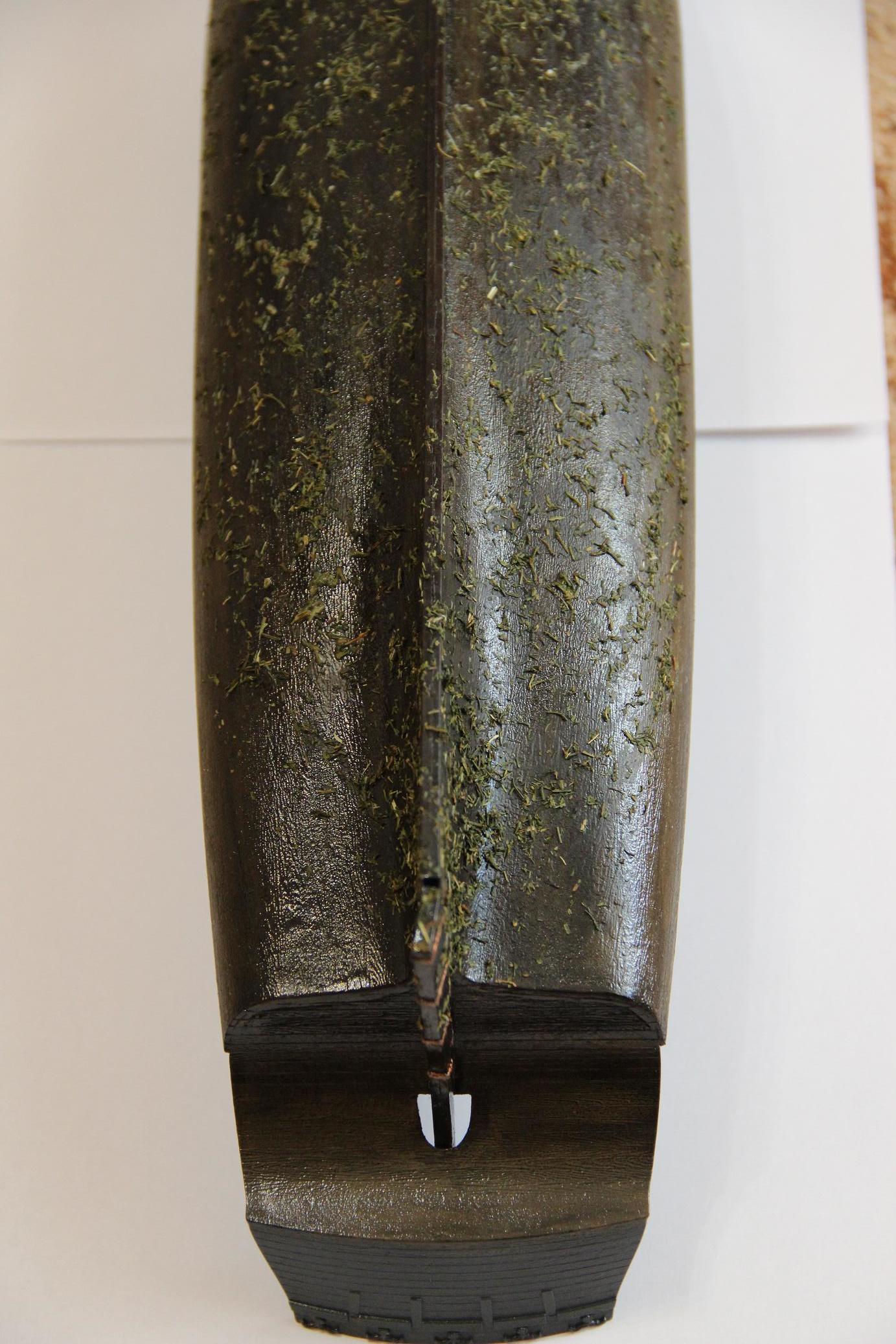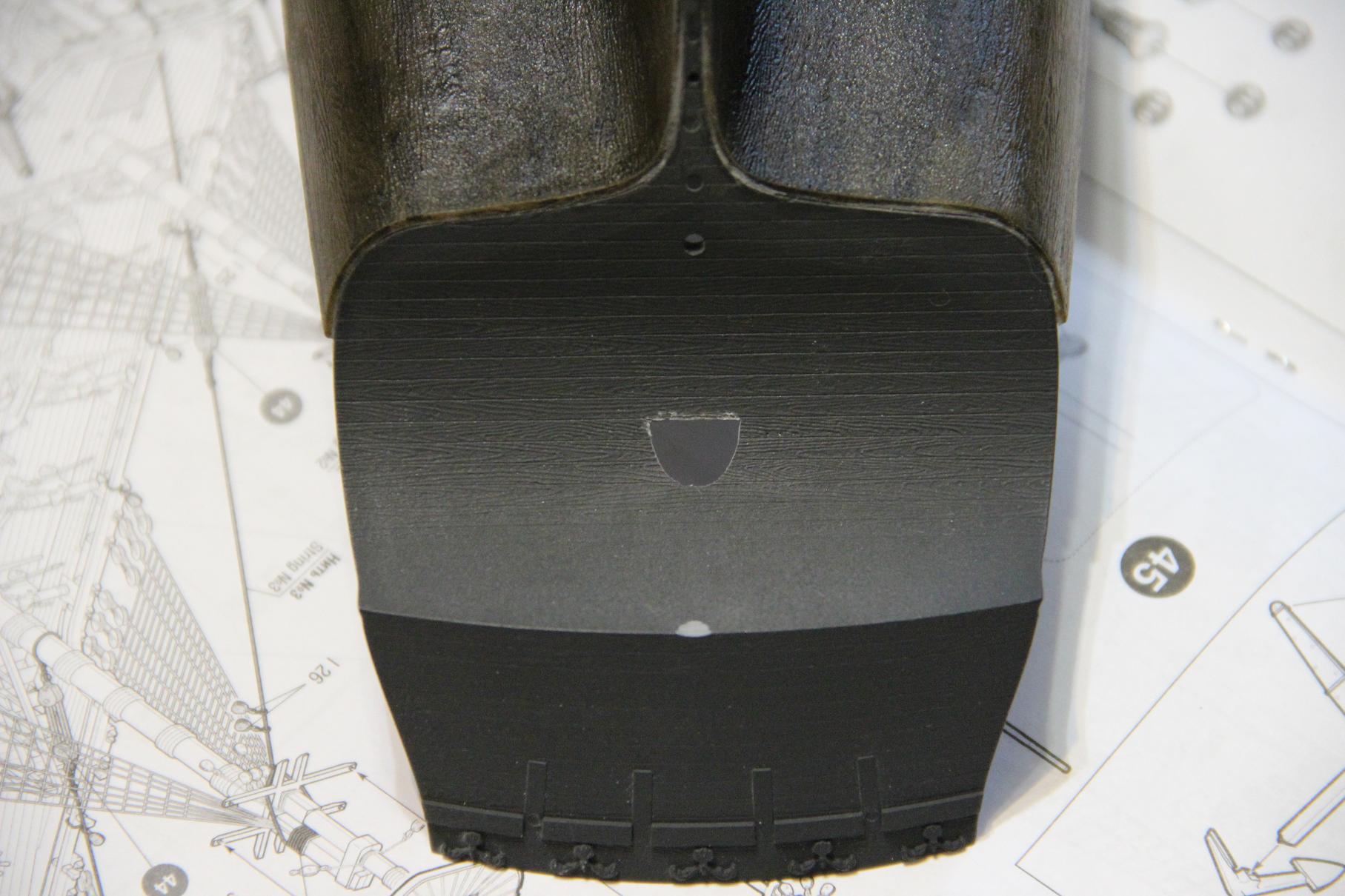 Всем доброе время суток ! Зашпатлевал и покрасил ахтерштивень и перо руля. Навесы обклеил медной фольгой.