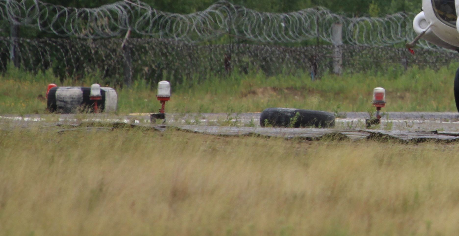 По углам вертолетной площадки шины от ан-2 покрашены в полоску белый черный 8 частей (4 белых и 4 черных).