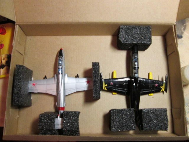 В наличие имеются наборы от AMK L-29 и L-39 от Южного фронта. Обзоры на содержимое коробок есть в сети, по этому описывать смысла не вижу. Скажу только что на первый взгляд радует качество отливок, тонкая и четкая расшивка, прозрачность фонарей и качество декалей.