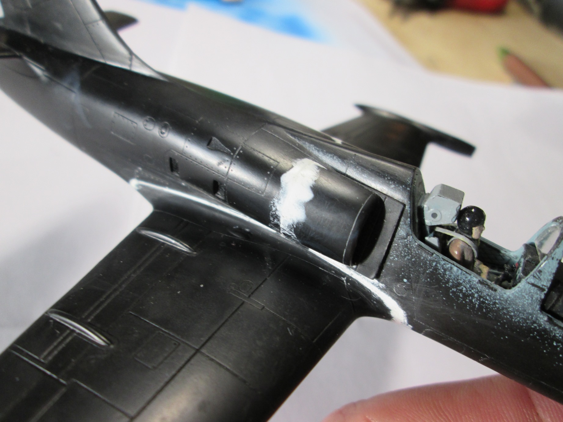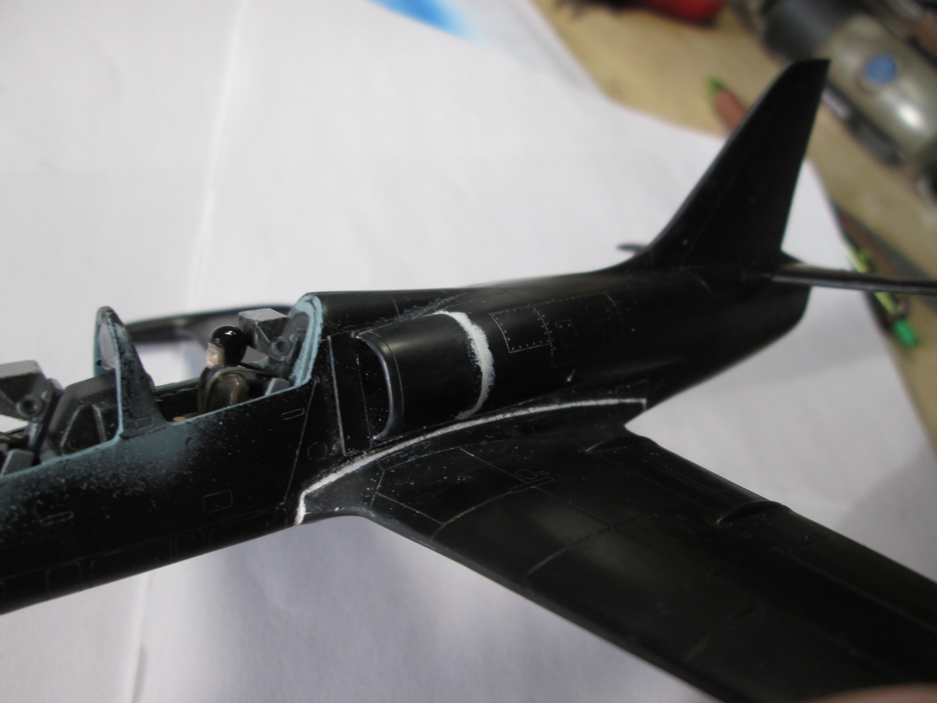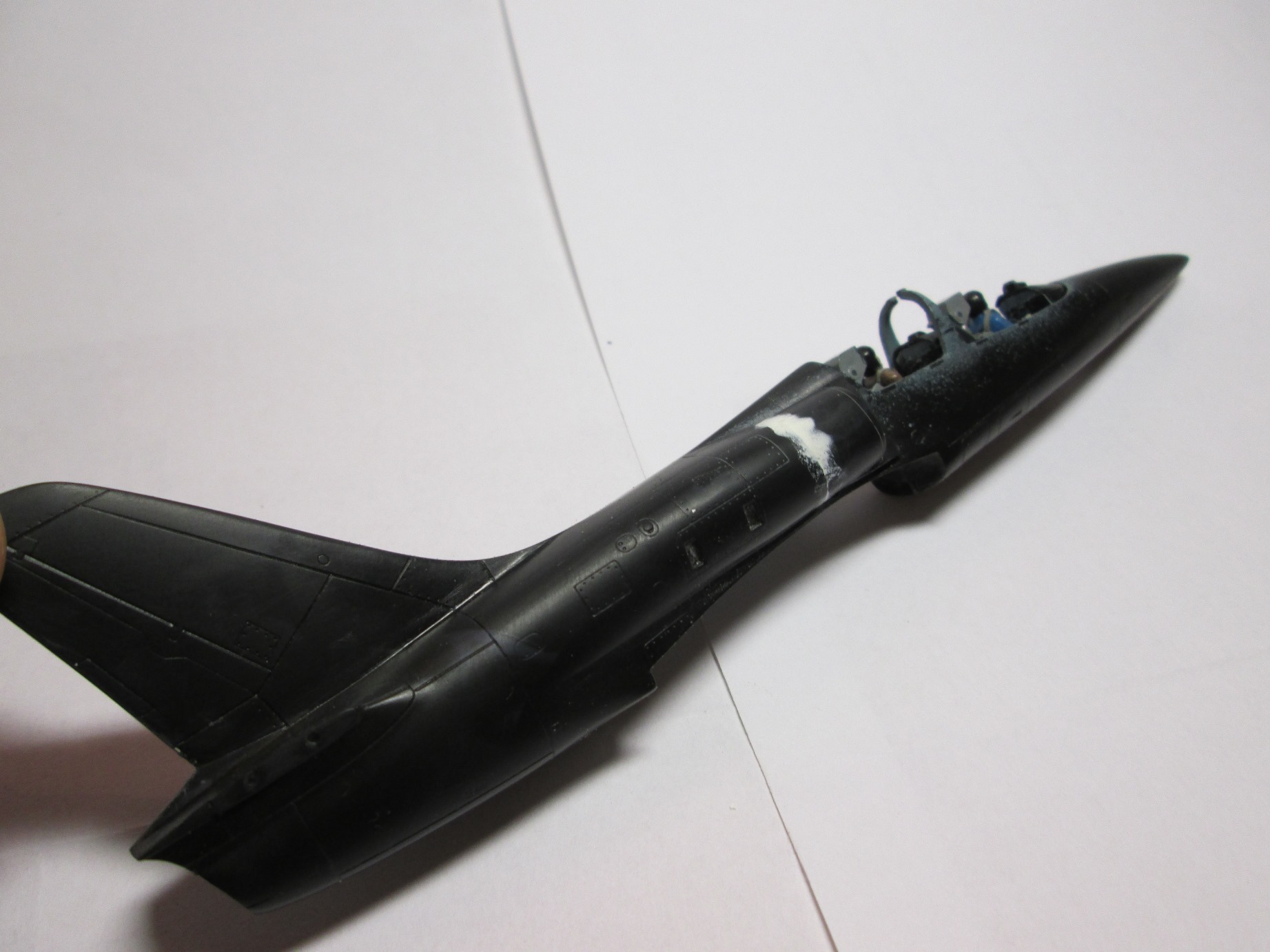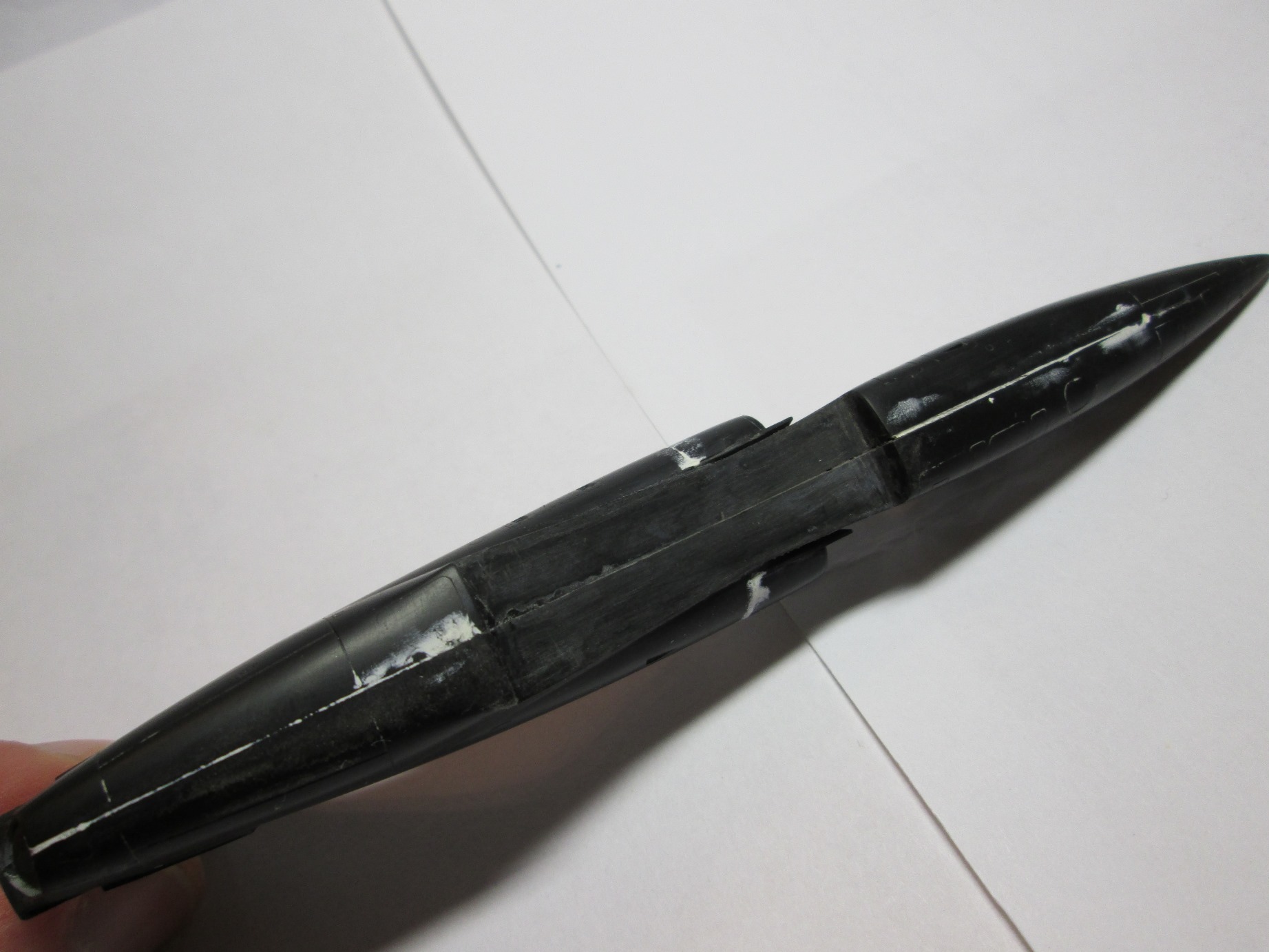 "Альбатрос" стыкуется посложнее, но в целом терпимо (я ожидал большего), пластик по ощущениям какой то мыльный и кажется мягким. Пришлось шпаклевать щель на днище почти по всей длине и замазывать ступеньки на воздухозаборниках.