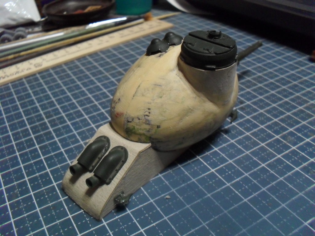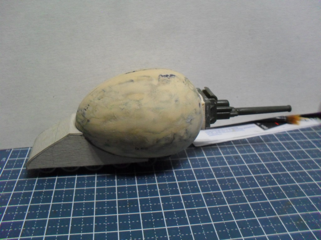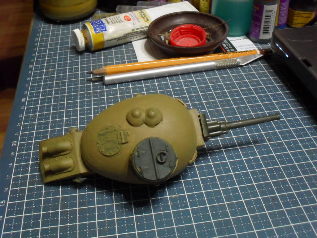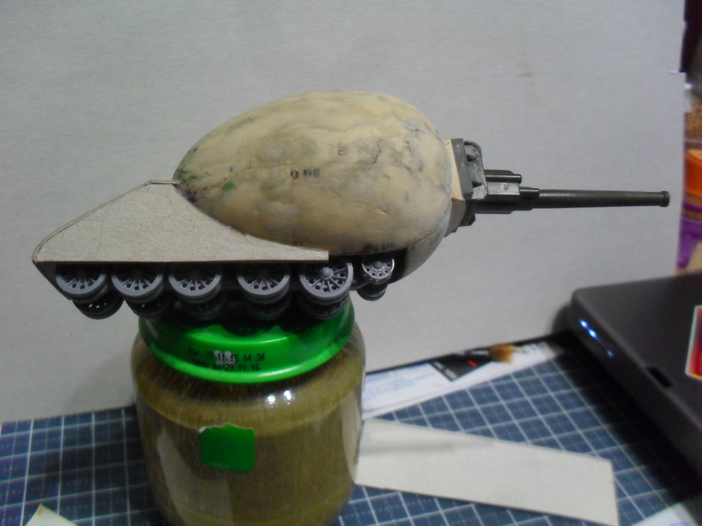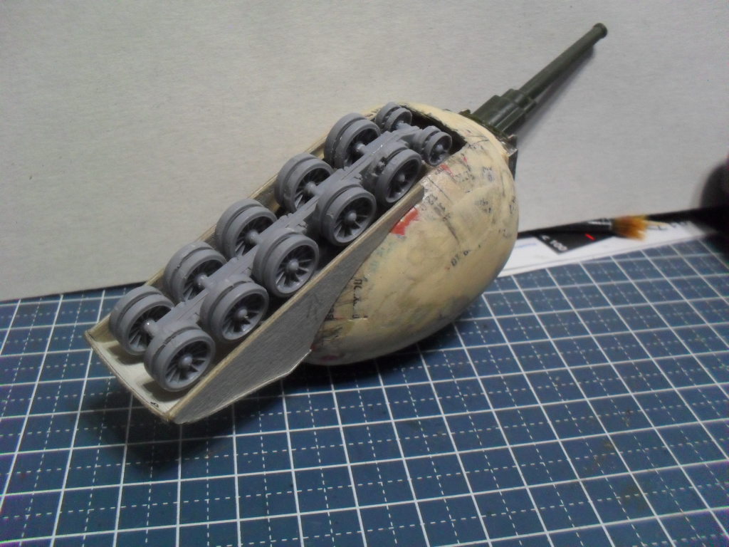 Тоже с одной гусеницей по шву вдоль яйца,а на боковинах сделать каплевидные башенки со стволами,на вроде как у танка Марк-V