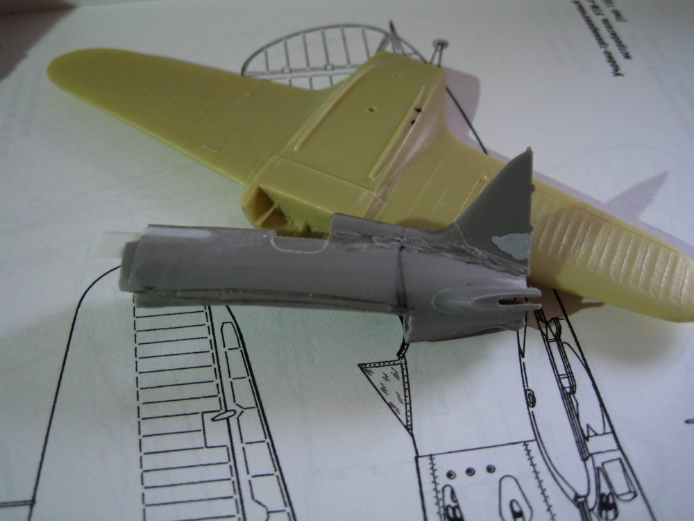 Не буду объяснять причины,почему я решил использовать фюзеляж из пластикового набора,просто так получилось. Сразу скажу,что он по сечениям гораздо хуже при сравнении с оригиналом,в отличии от смоляного.Я несколько попытался выправить эту ситуацию,сделав борта за кабиной более пологими. Считаю получилось более-менее похоже. Так же буду делать и с другими наборами И-16 от ICM.