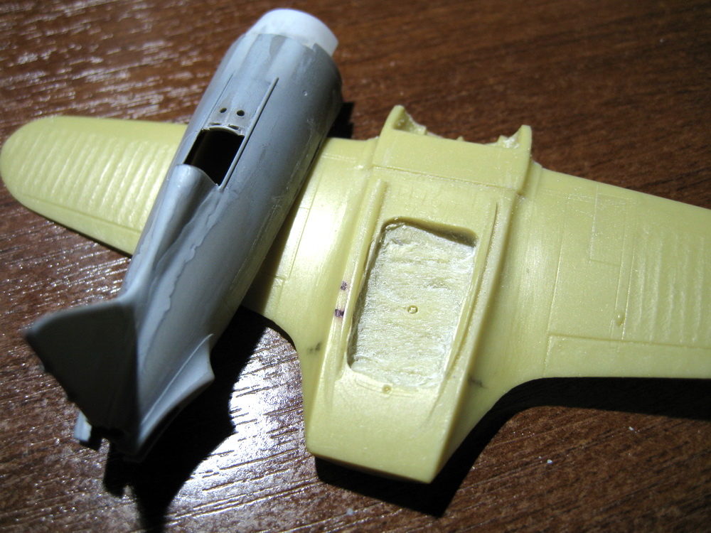 Небольшое обновление после продолжительной паузы,связанной с работой над С-47. В крыле сделал углубление под кабину. Сечение гаргрота подогнал к фонарю. Прорезал захваты? и окна сверху.