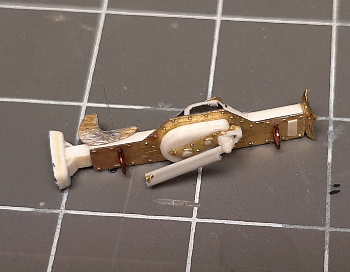 3. Передние крылья - Абер. Изначально получились подвижными - но потом пришло понимание, что это и нафиг не надо. Вклеил намертво). Сами крылья паянные. Имитация пружин - навитая проволока.