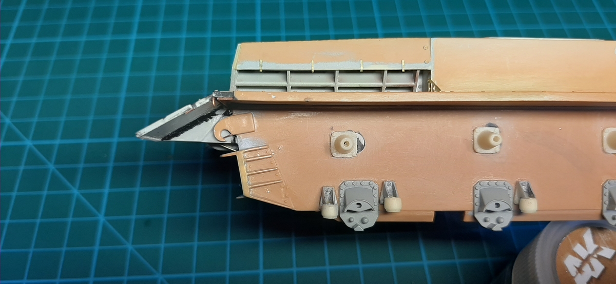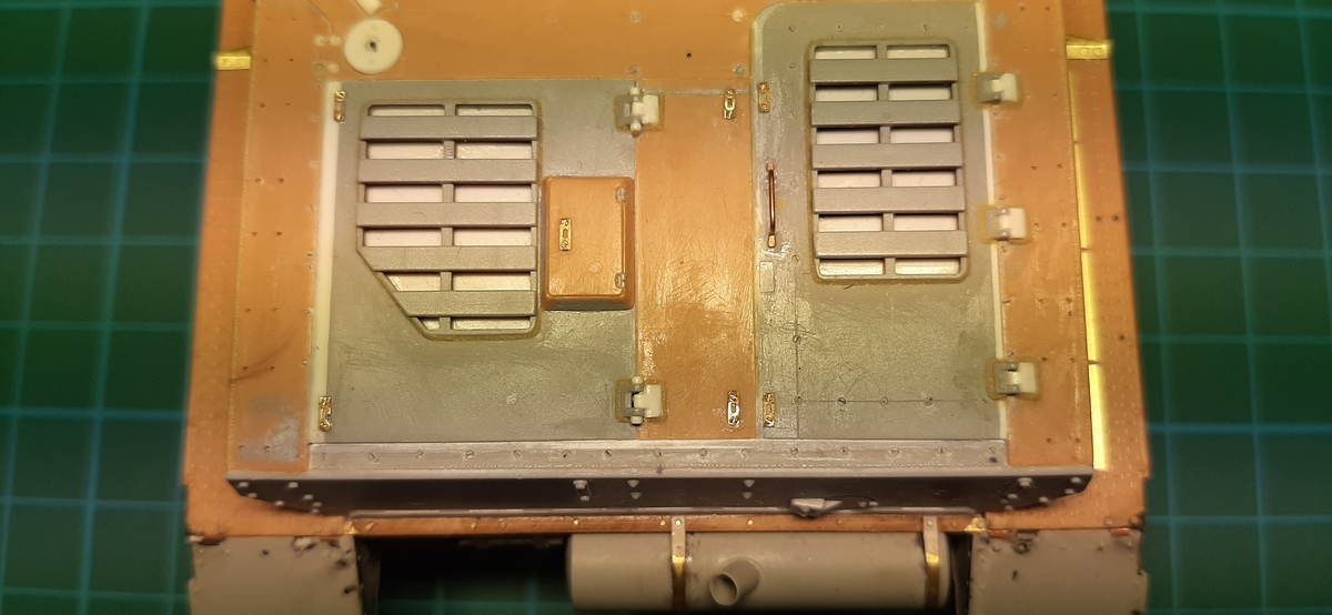 11. ЗАдняя верхняя бронеплита, тоже Драгон, пришлось верхнюю планку дотачивать пластиком, когда возился с надмоторными люками.
