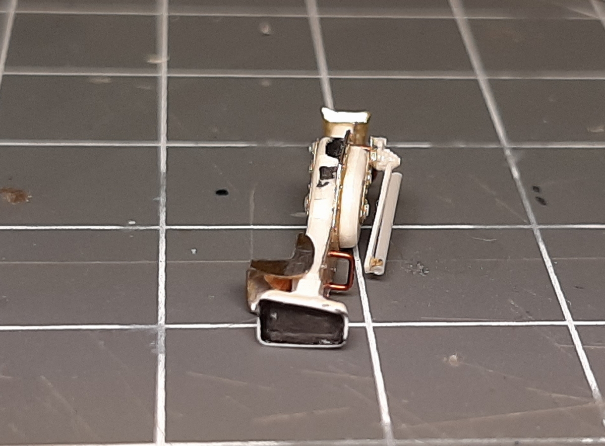 17. Домкрат. Та же самая история. Такое ощущение, что в Рейхе их для вермахта каждый сарай клепал, такое их было разнообразие и количество разновидностей. Изрядно углубившись в теме и поняв, что систематизировать и упорядочить информацию мне будет не под силу, я забил и слелал усредненный вариант домкрата нужной мне тоннажности. Применял листовой полистирол, аберовское не точное травлои проволоку. Оказалось, что механизм довольно таки ажурный и потребовалось масса усилий и времени, чтобы сделать это смотрибительно. Вершиной было изготовление вручную шестеренок трещетки домкрата, и кое как это удалось с 10-й попытки).