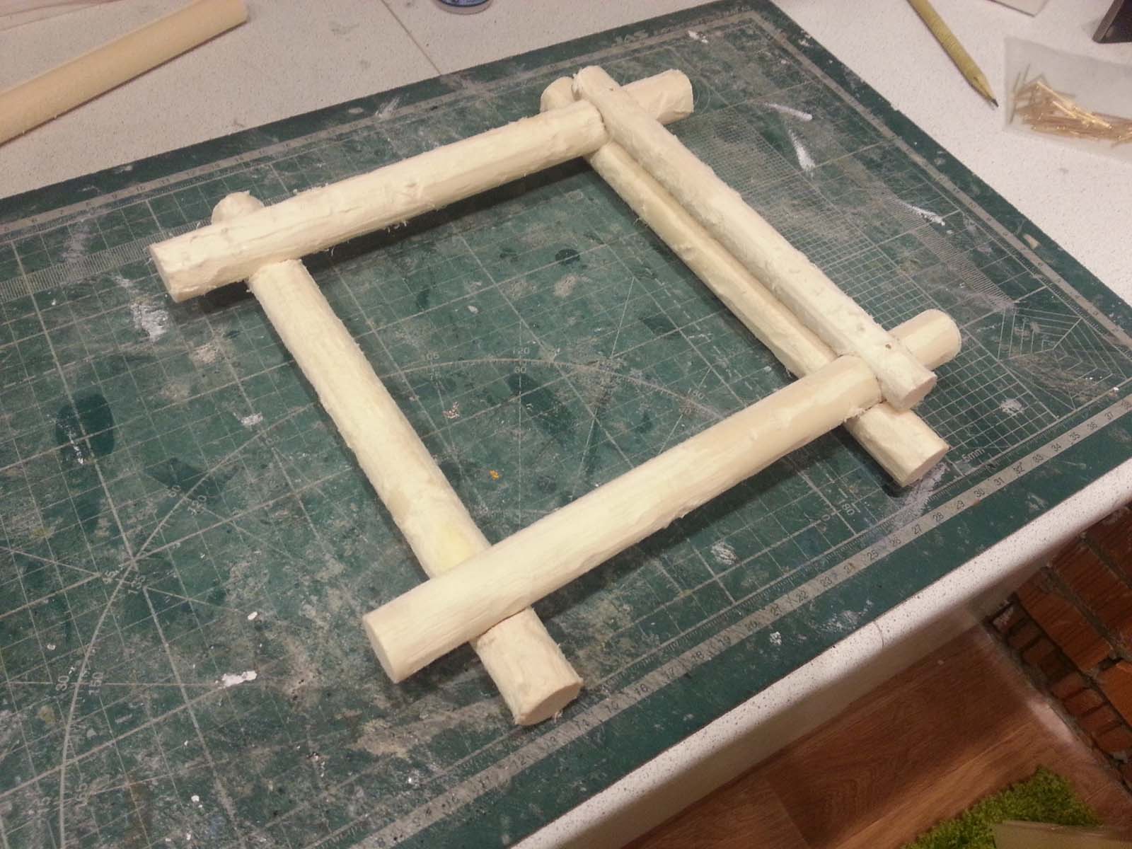 Врезки/врубки примерно как у настоящих срубов за небольшим упрощением