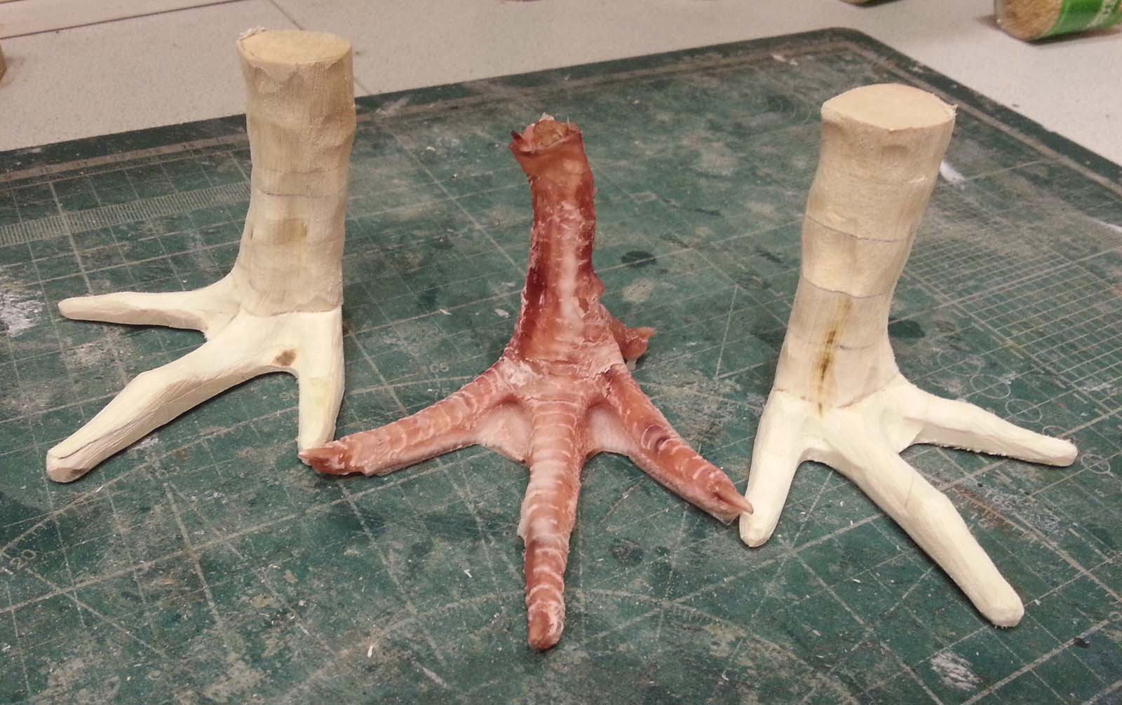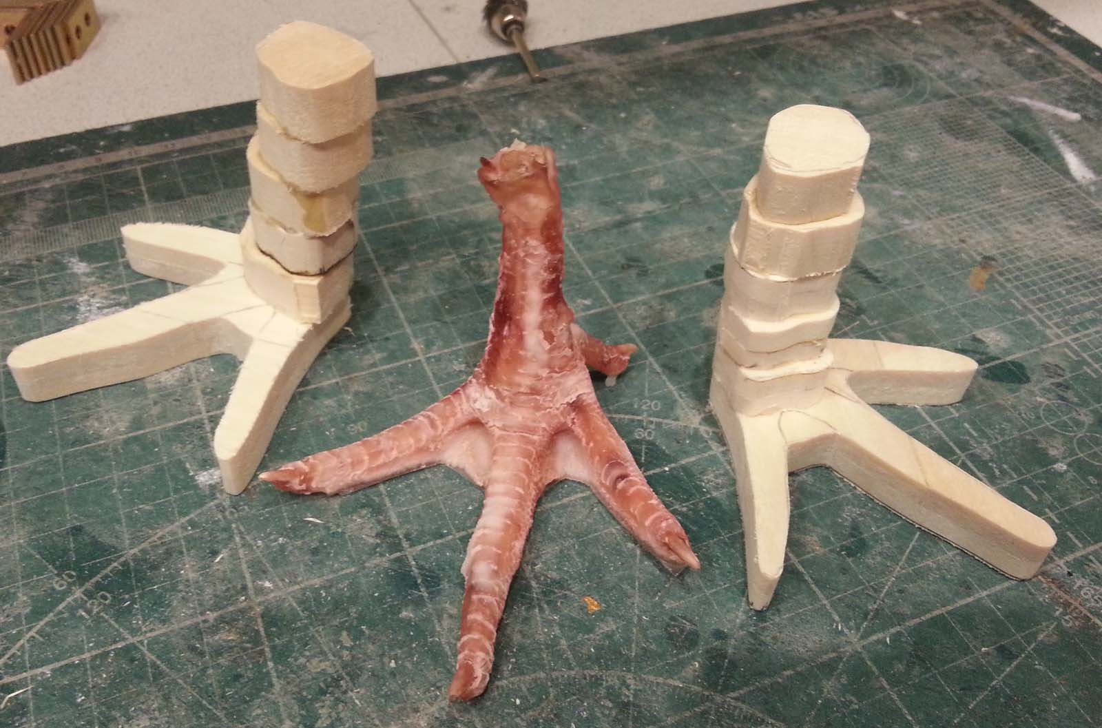 Берём натуральные куриные ноги, делаем с них слепки и заливаем подходящим материалом....