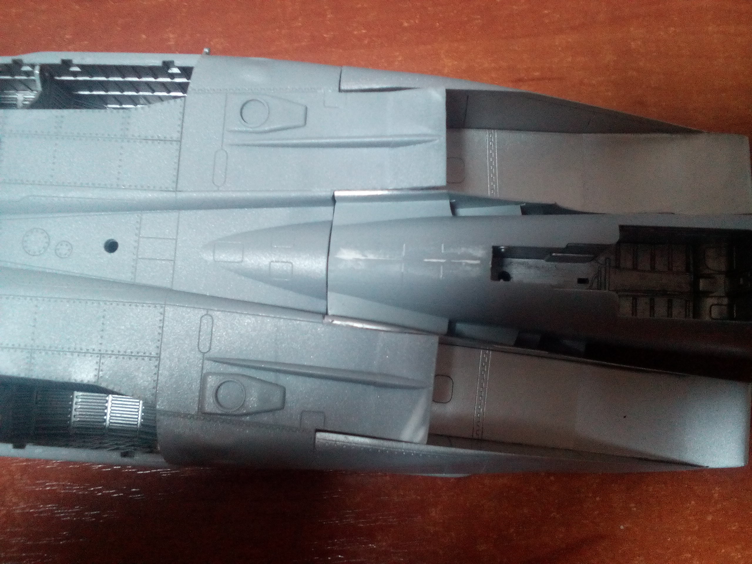 Всем привет. Собираю МИГ-25 1/48 ИСМ. При стыковке головной части с фюзеляжем снизу образовались 2 дырки. Не понимаю что не так пошло. При сборке следовал инструкции. Может кто то стыкался с такой проблемой. Прошу помочь советом.
