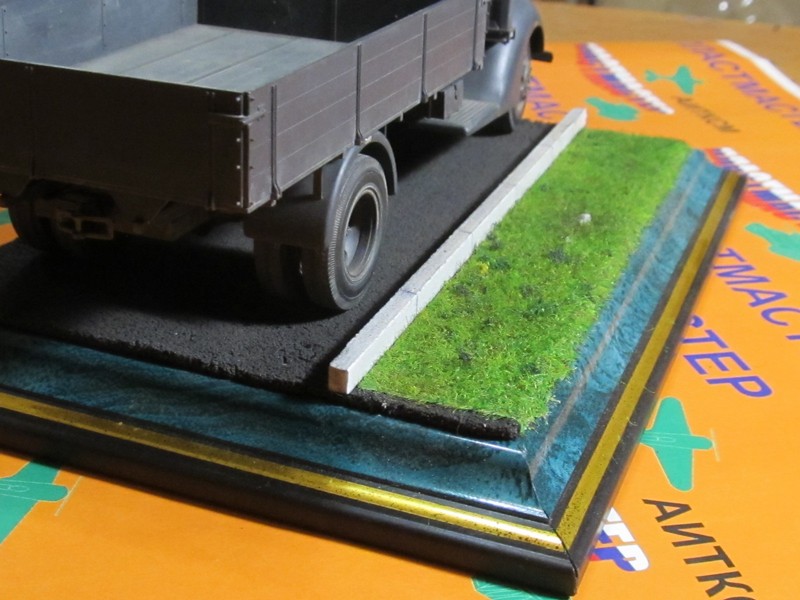 ПОДСТАВКА ПОД МОДЕЛИ С ИМИТАЦИЕЙ АСФАЛЬТОВОГО ПОКРЫТИЯ В РАМКЕ ОТ "ЗЕБРЫ", 10Х15см, С ОКАНТОВКОЙ (пижонская, но красивая).