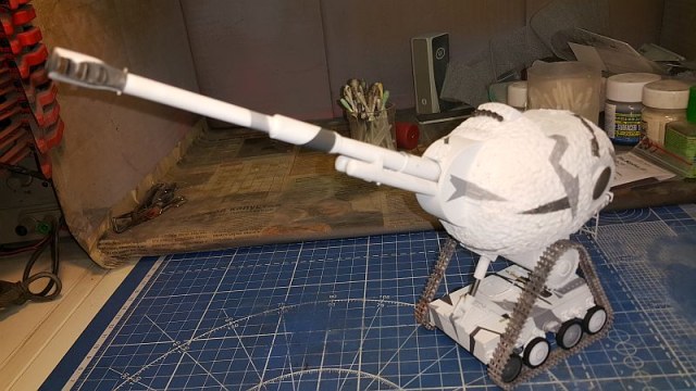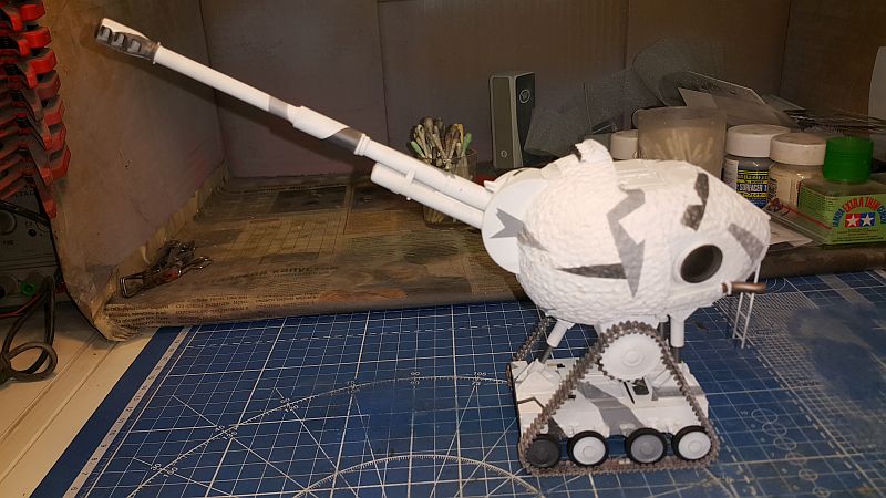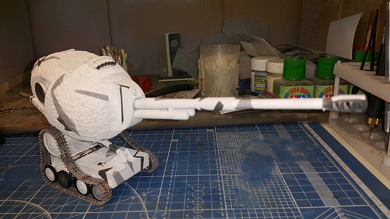 Проблема в месте и ватмане (которого нет). Когда делал - о габаритах не думал. Оказалось, что нет у меня и футляра, вмещающего сего монстра (по высоте). Но эту проблему я решил - переводом Яйце САУ в железнодорожно-транспортное положение: