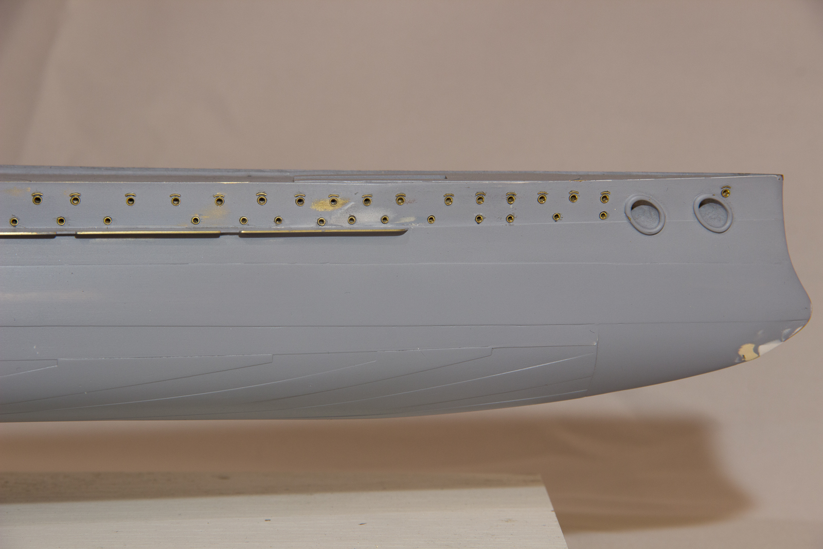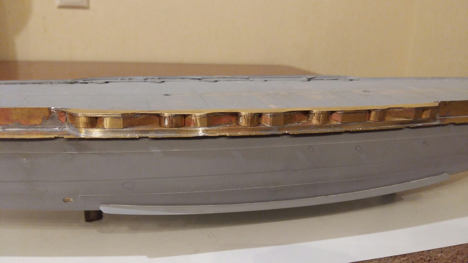 наконец-то взялся за мою больную тему. Долго я откладывал изготовление казаматов левого борта, но больше откладывать нельзя, уж очень хочется закончить работу над корпусом и начать укладывать деревянную палубу. Процесс изготовления казематов расказывать не буду и так все понятно. Одно только скажу, что на этой модели это самая большая и длинная (около 50 см) паяная деталь.
