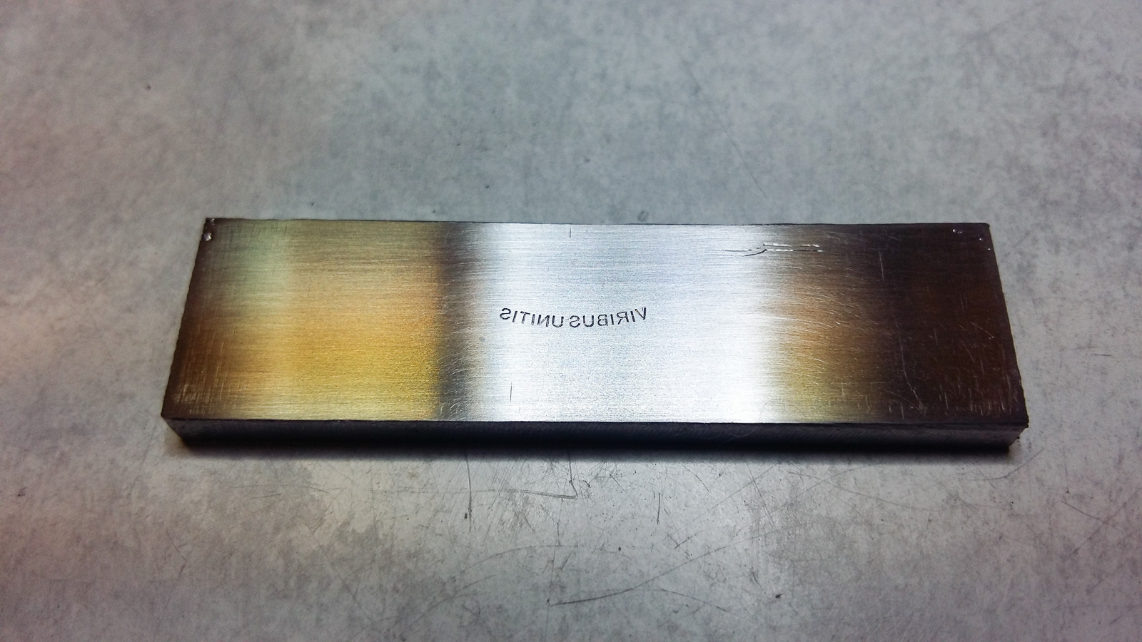 В моем случае я выбрал второй способ, т.к. материал для матрицы я выбрал тонким и он совсем не подходит для пресса. Если честно материал оказался совсем не подходящим для этих целей. Не закаливается, но на две таблички хватило. Больше не буду использовать заготовки из этого материала. Что за марка стали мне не известна.