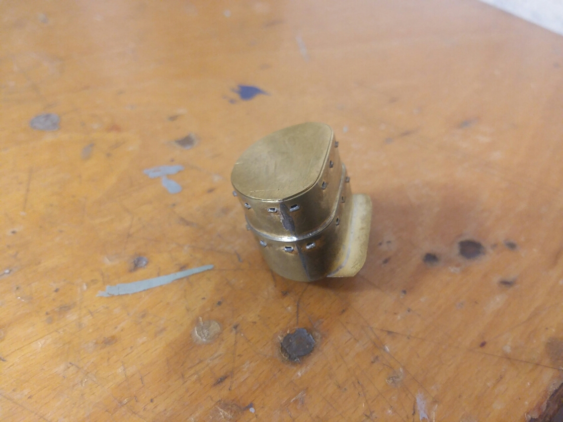 Просверлил отверстия на корпусе под ножки и приклеил деталь. Выстоту козырька уже подгонял на корпусе. После подгонки по высоте удаляется облой. Все козырек готов.