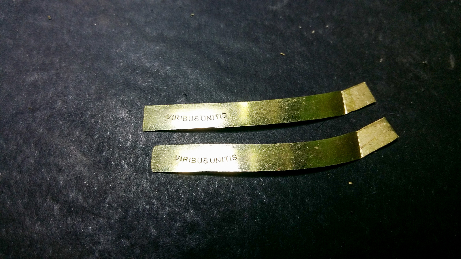 Ну и на по следок сделал матрицу гравировки названия корабля методом ручной гравировки. Высота букв 0.9 мм.