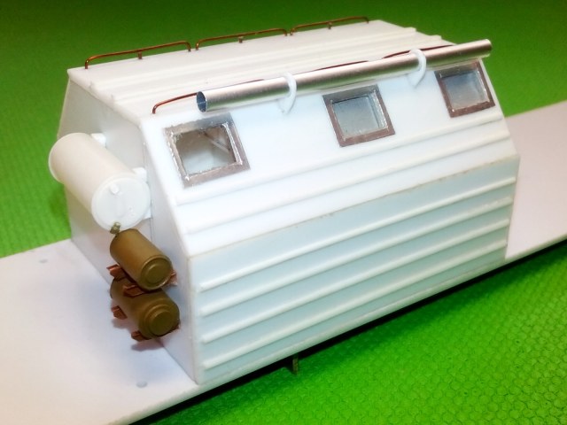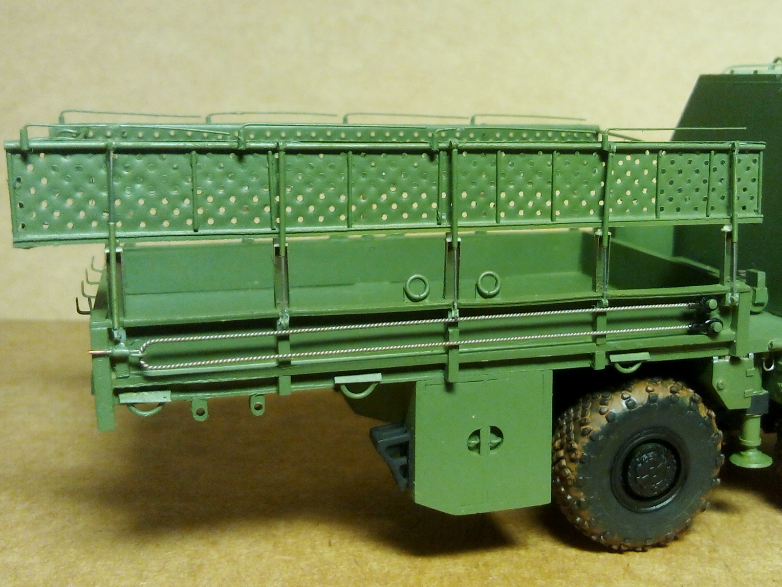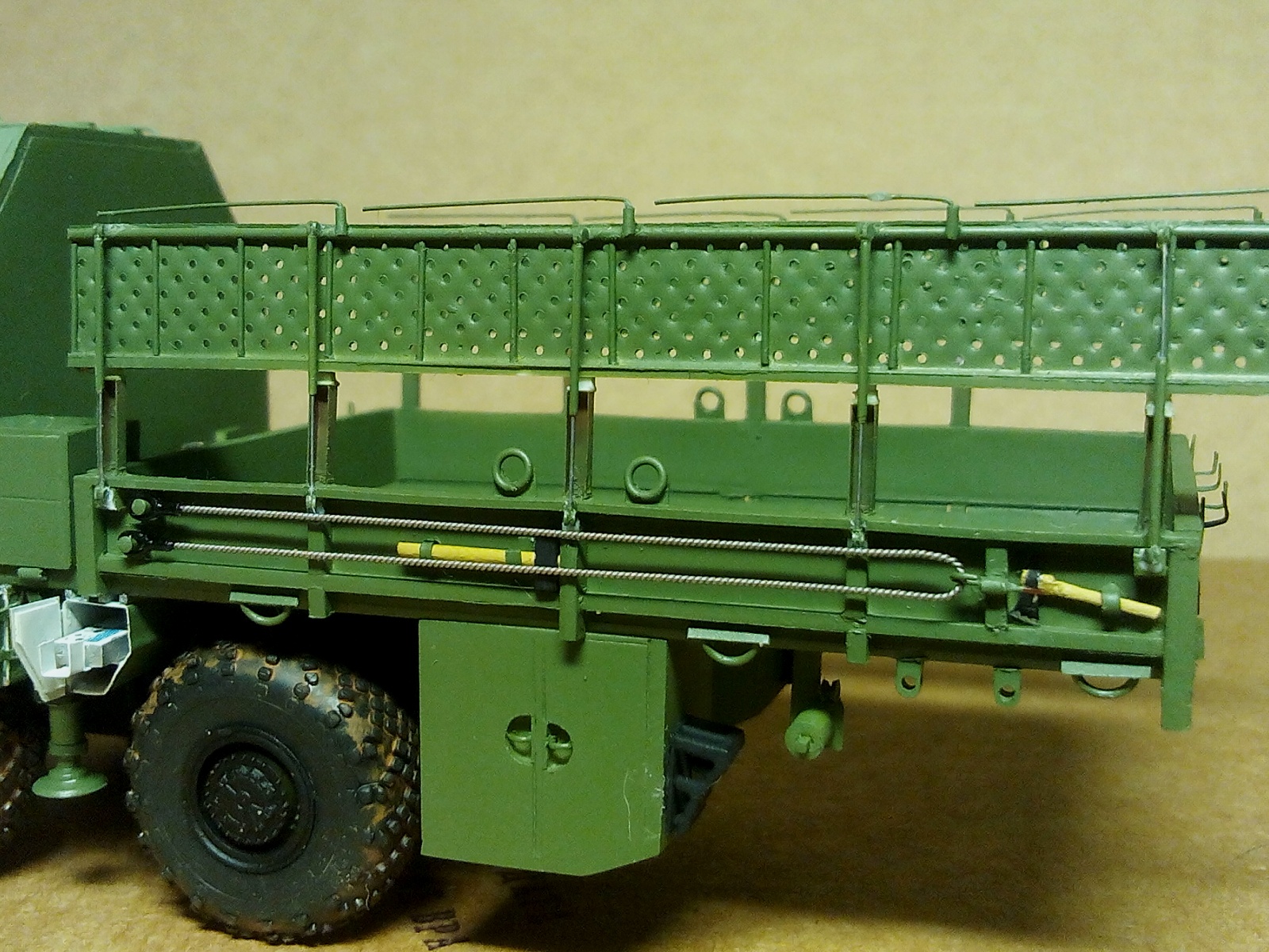 Закончил сборку верхних боковых бортов. Добавил дуги - держатели маскировочной сети (я так думаю).