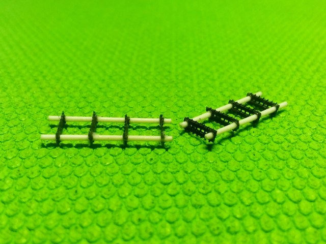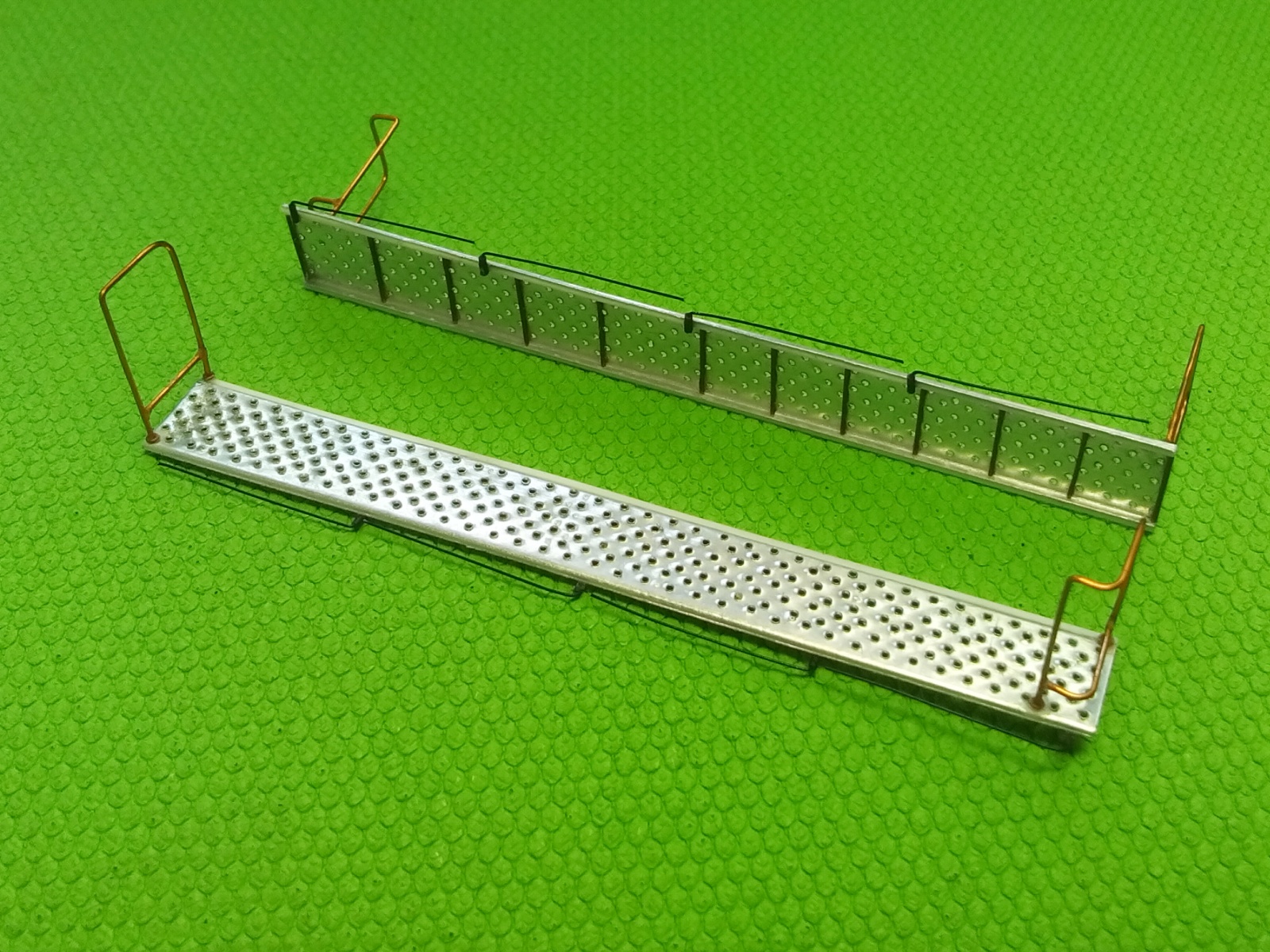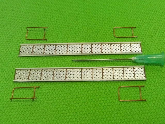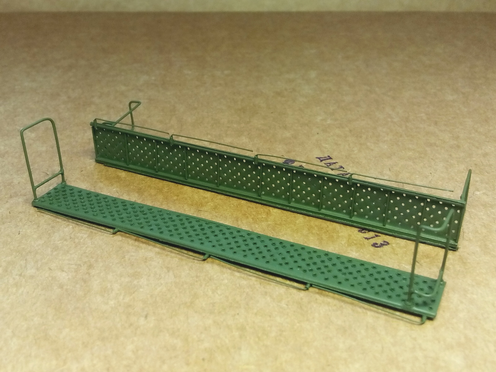 А это трапики. Отверстия в головках сделаны не только из соответствия копийности. Они несут в модели функциональную нагрузку. Лестницы планируется использовать и в транспортном положении и в рабочем. (Может будет ещё композиция "Служили два товарища 2". Если найдётся хороший "Ярс".)