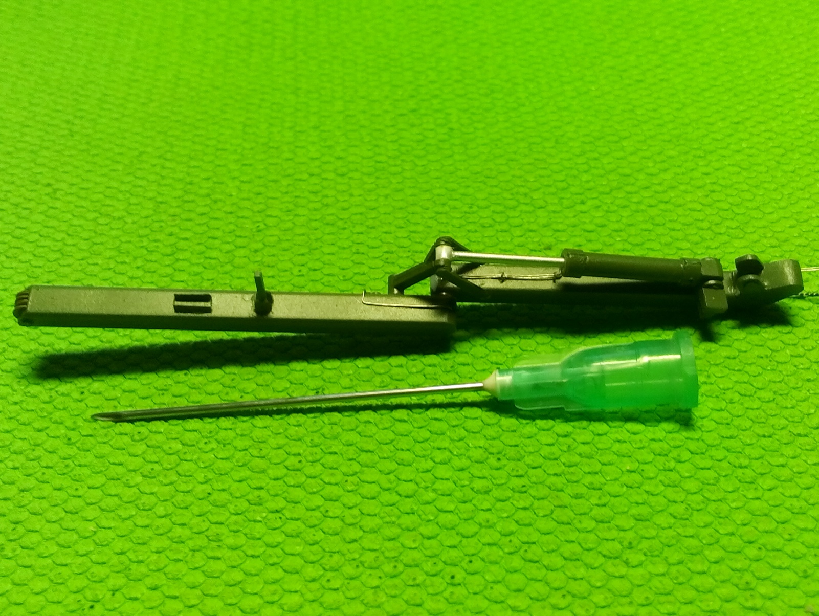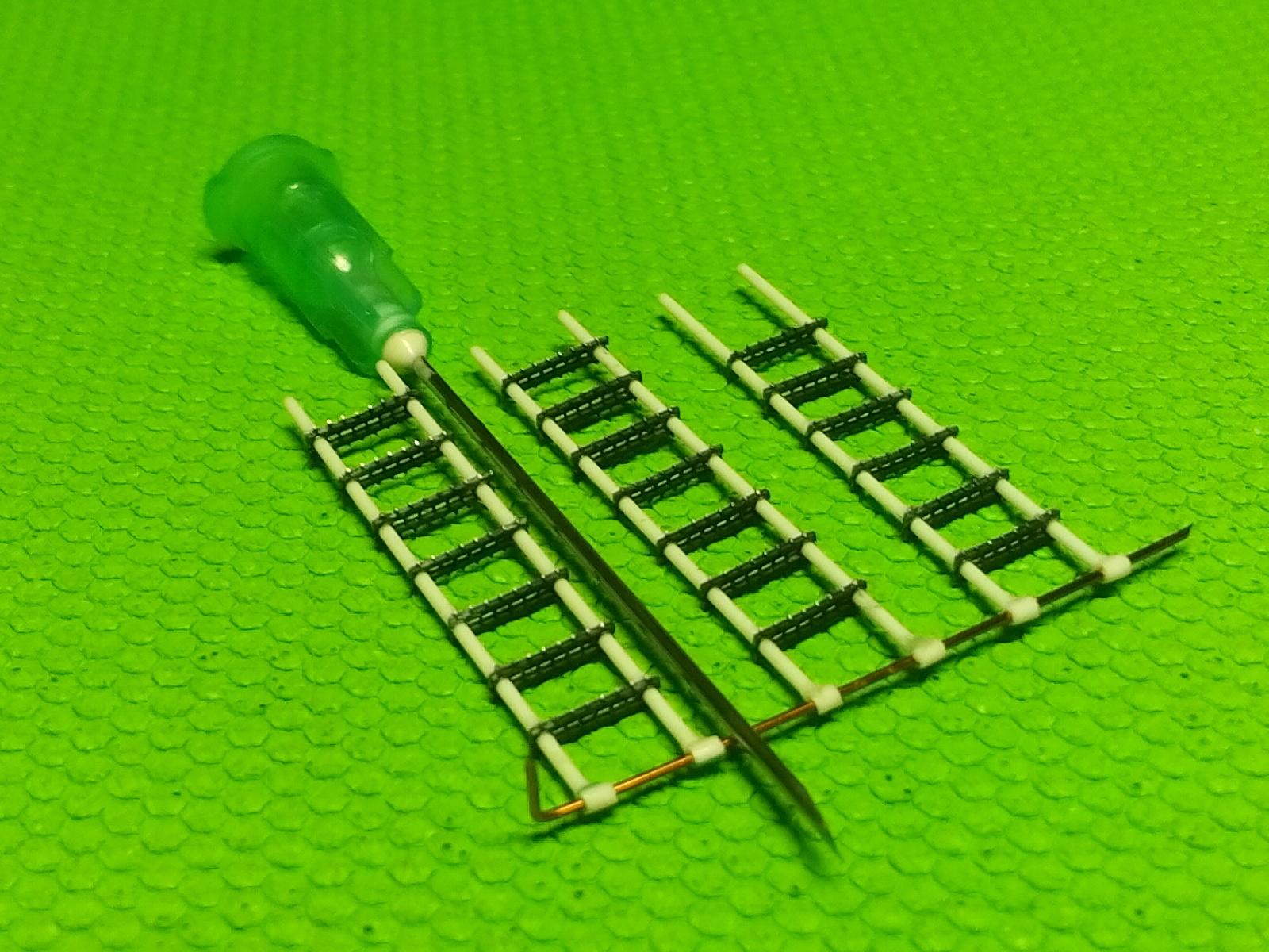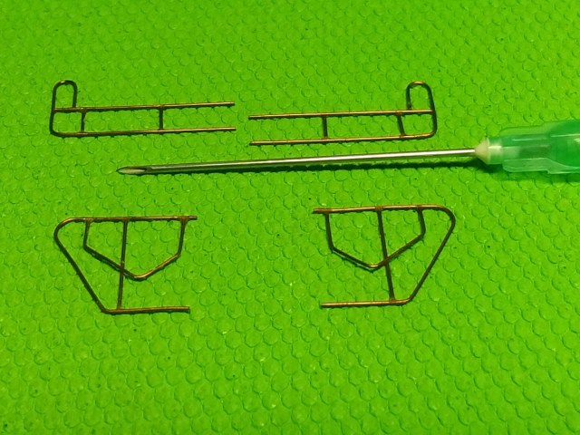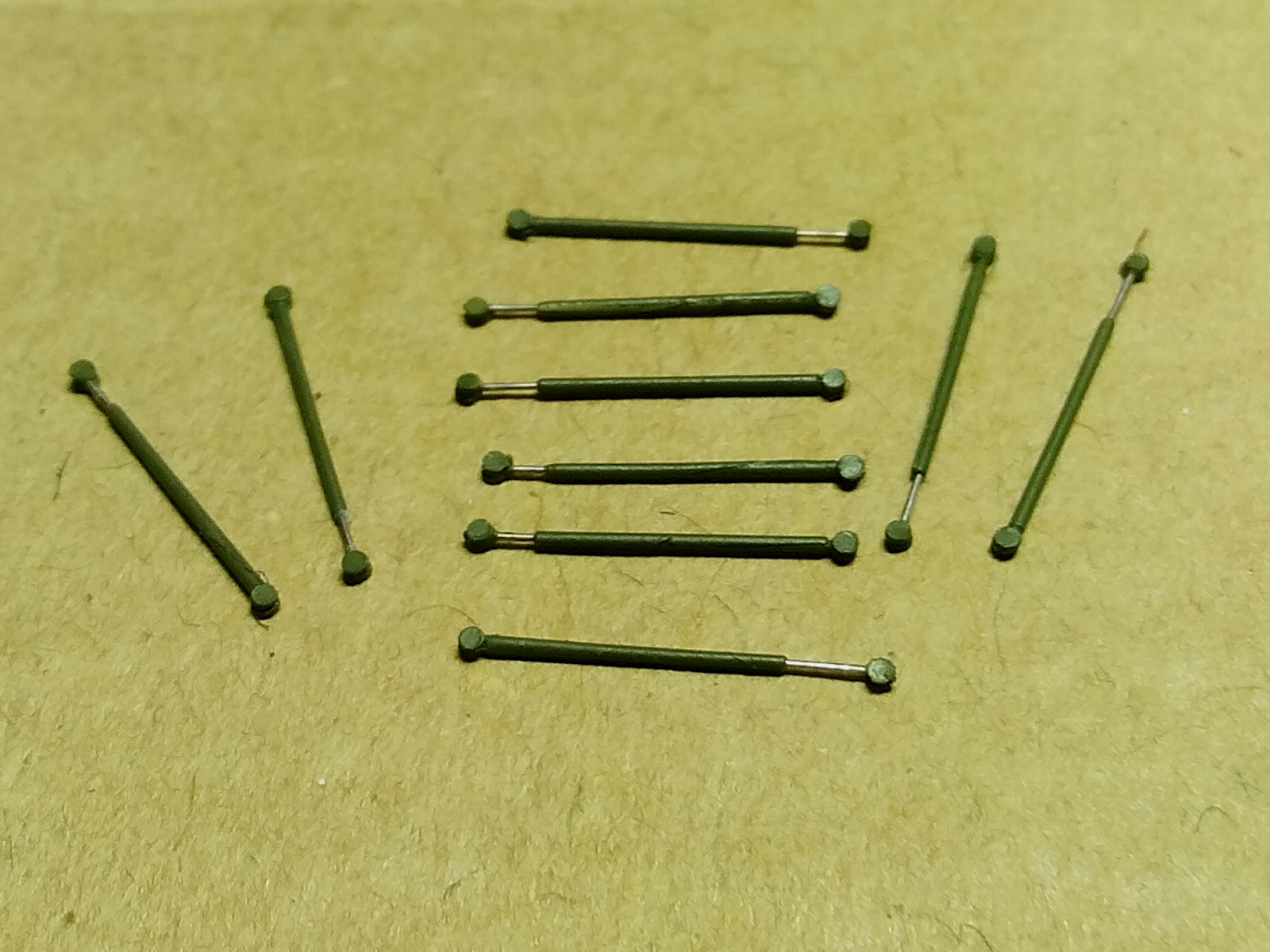 А это трапики. Отверстия в головках сделаны не только из соответствия копийности. Они несут в модели функциональную нагрузку. Лестницы планируется использовать и в транспортном положении и в рабочем. (Может будет ещё композиция "Служили два товарища 2". Если найдётся хороший "Ярс".)