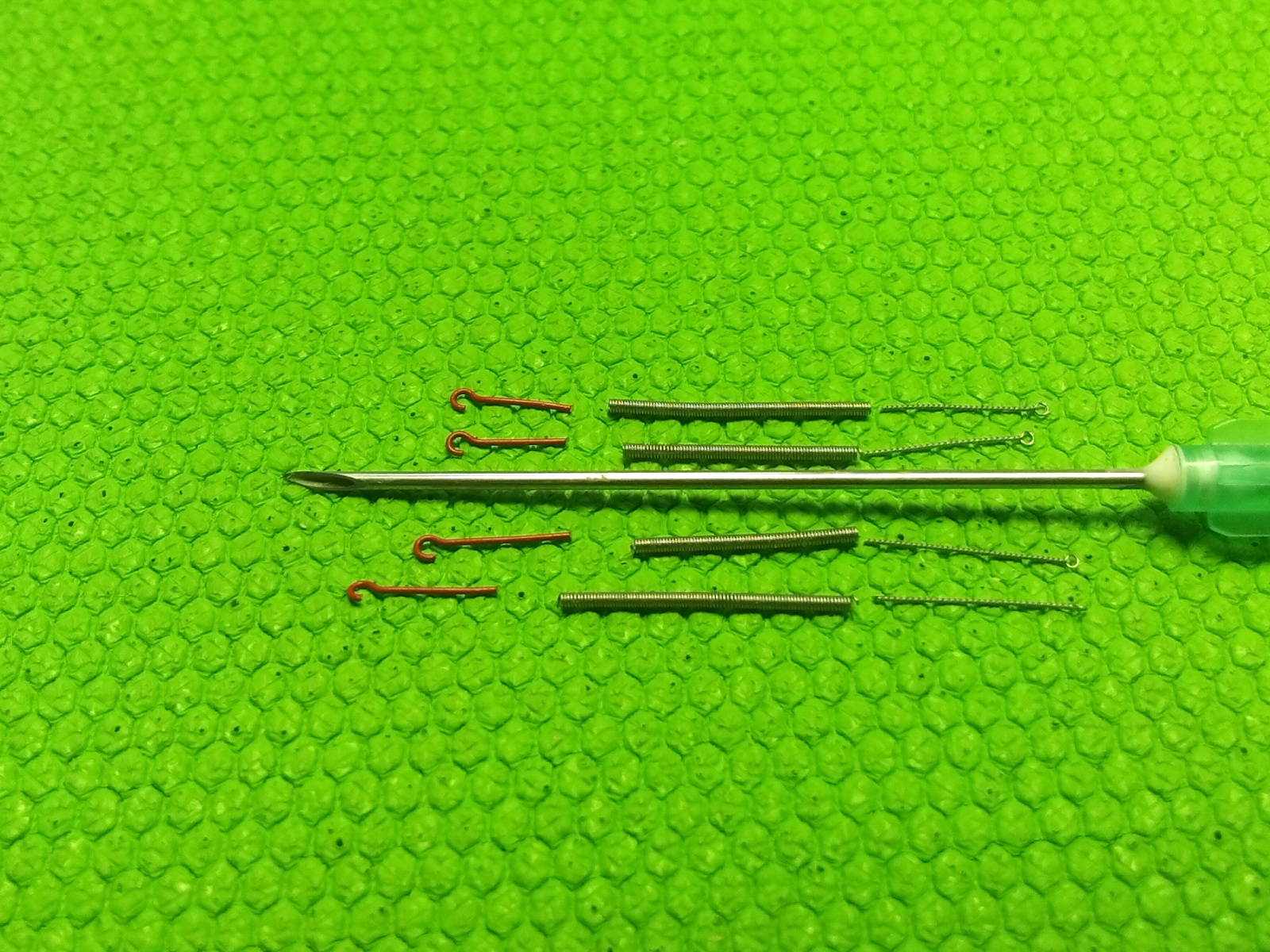 Отогнуть витки красиво не получается. Вклею в торцевые части подготовленные крюки и петли.