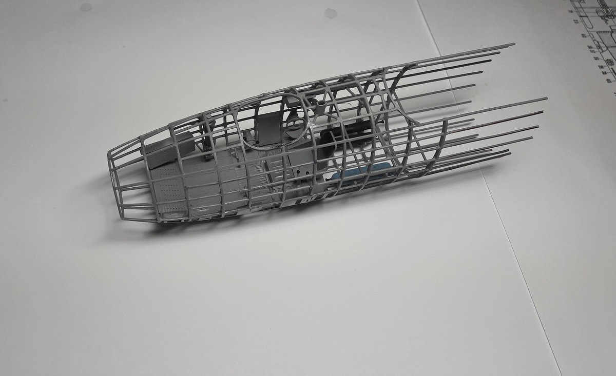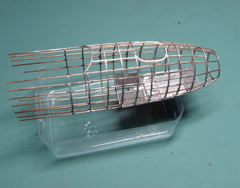 Чтобы немного разбавить отчет, покажу поэтапно изготовление рифленого пола кабины штурмана. У меня особая проволока, я о ней в теме про "Пешку" уже писал. Её можно заменить медной такой же толщины, думаю, это не значительно усложнит процесс. Все это дело тщательно обтягивается фольгой-самоклейкой. Ну и далее, почти готовый пол штурману.