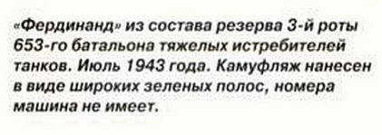 а вот и не прав был я! посмотрел я книгу (давненько я ее не листал) и обнаружил там боковик и фото по которой этот боковик нарисован. вот этот фердинанд - https://yandex.ru/images/search?img_url=https%3A%2F%2Fknigek.net%2Fcovers%2F5572%2Fi_092.jpg&.... это машина из 3 роты 653 батальона, которая была в резерве и поэтому номеров не имела. на Курской дуге и была потеряна.