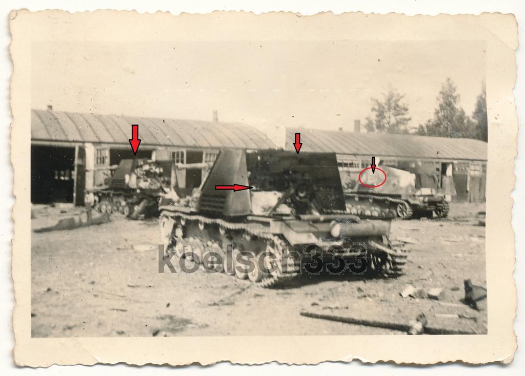 Основной сюжет диорамы - советская трофейная команда осматривает подбитый Nashorn после боя и собирает брошенное оружие.