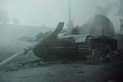 Впереди - имитация попадания снаряда.