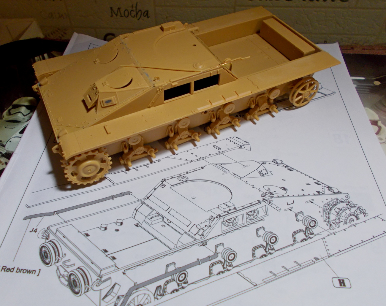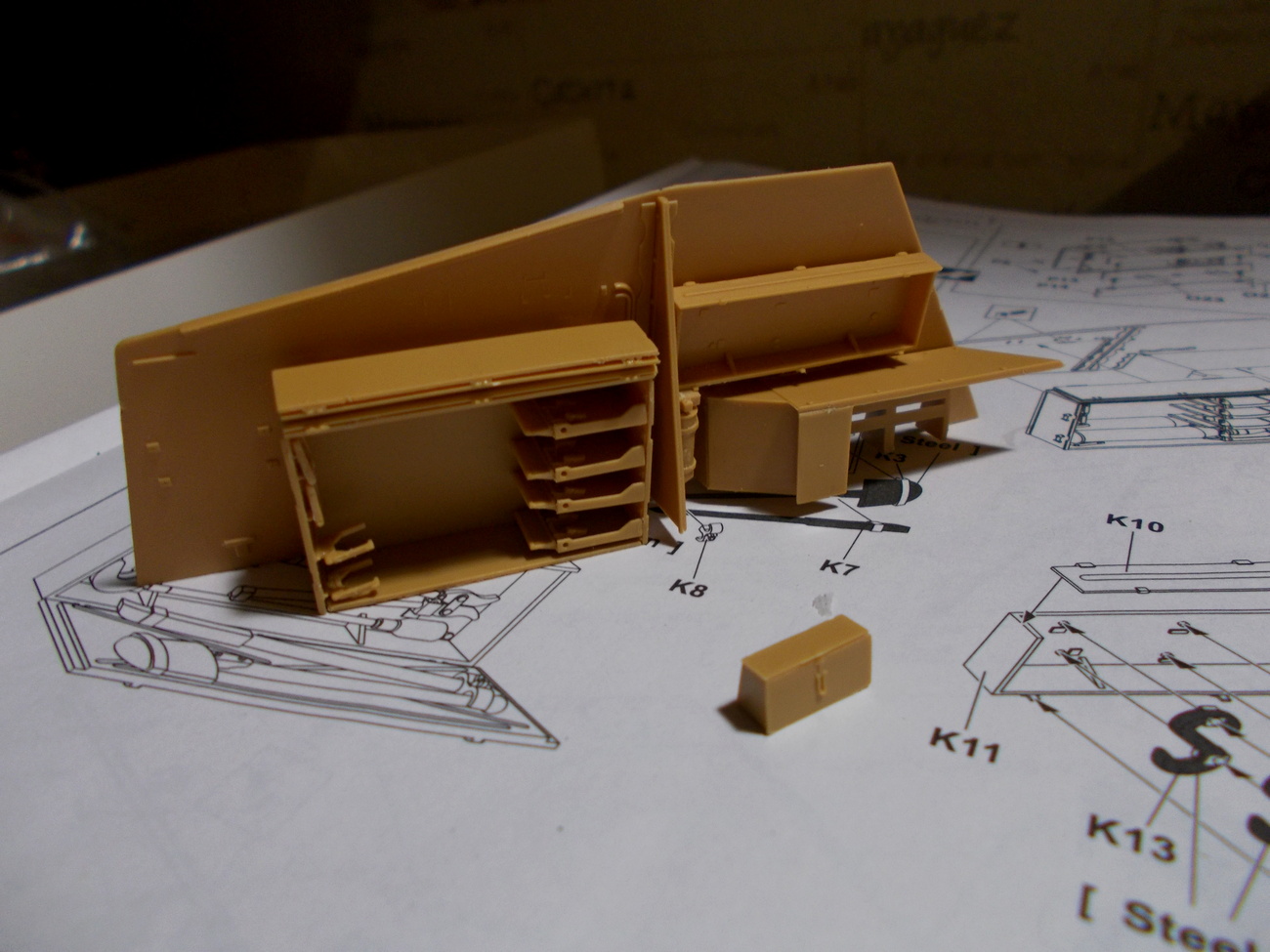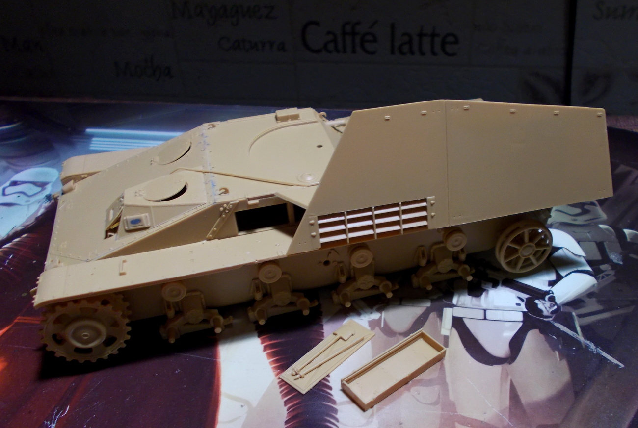 Ящик для инструментов я всё же решил приклеить потом - так будет удобнее их красить.