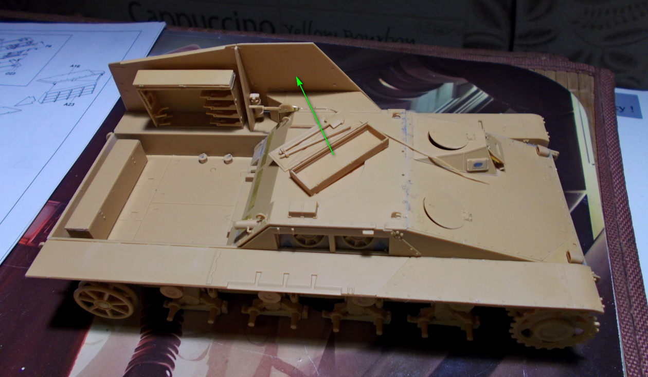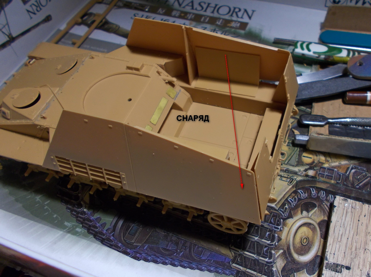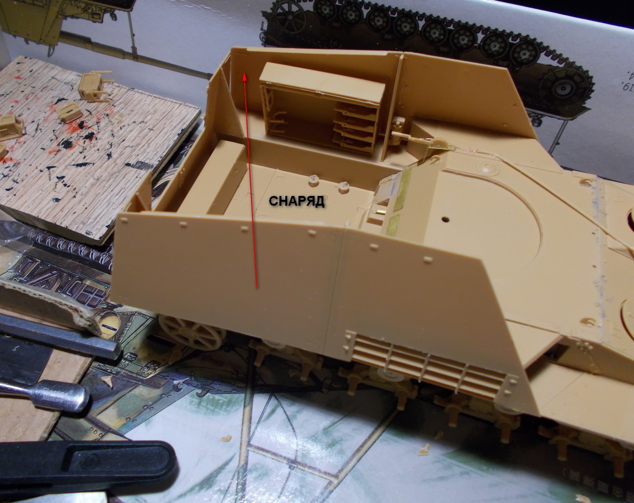 Снарядный ящик надо приклеивать после примерки - он может помешать приклеить борт.
