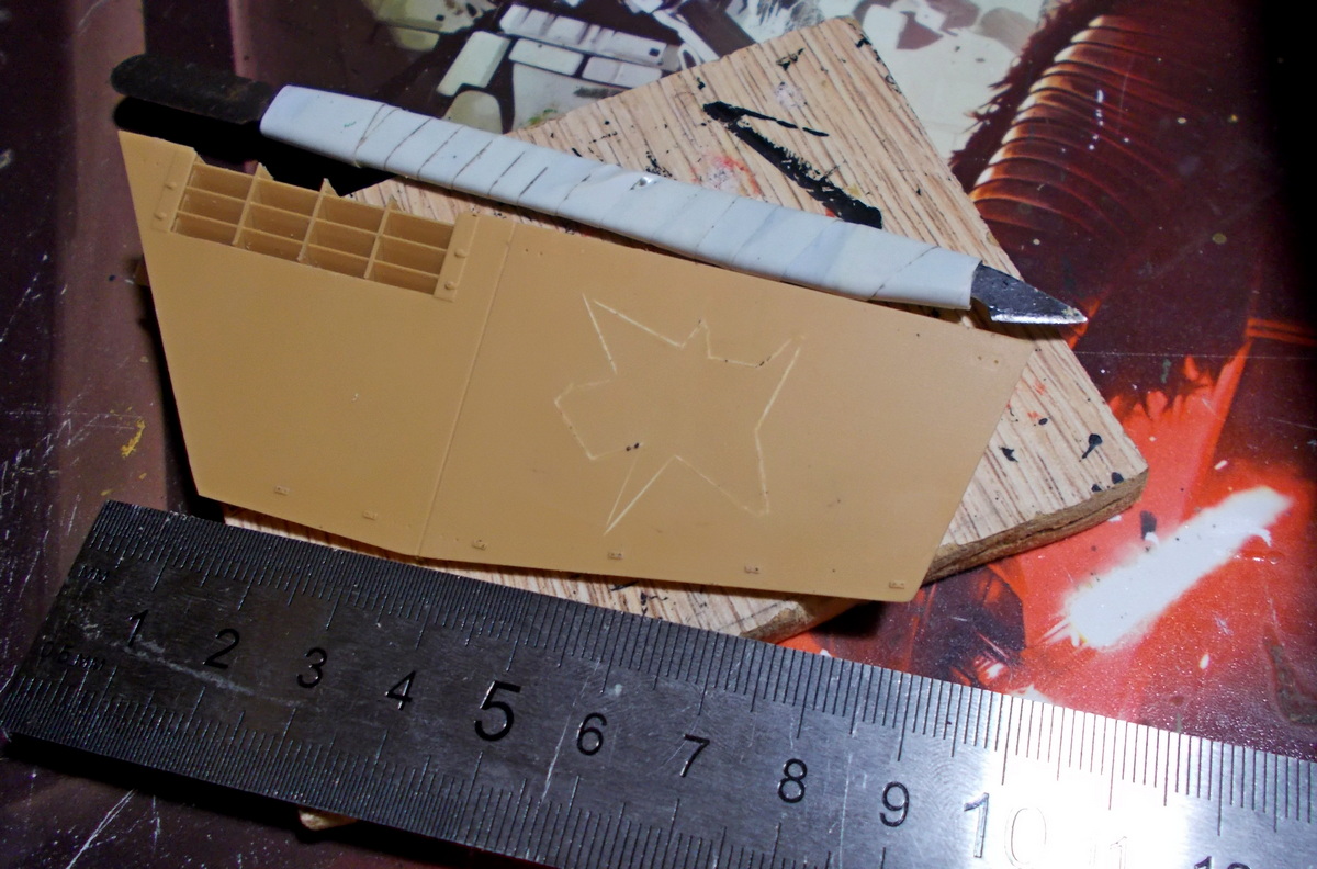 На правом борту сделал разорванный снарядный стеллаж. Потом на полу боевого отделения раскидаю его остатки.