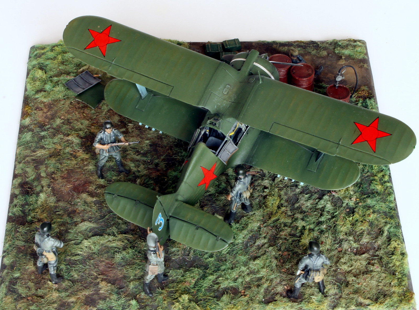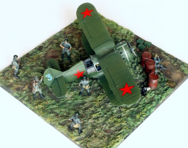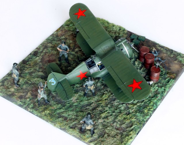 В диораме использованы солдаты из набора Звезды "Немецкая кадровая пехота". Позы солдатам переделаны под более расслабленные.