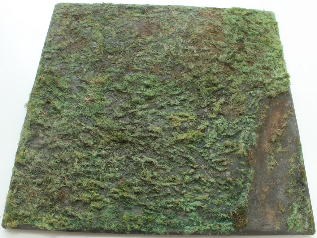 Земля - крашеный гипс на пластиковой подставке, трава - натуральный лён. В окраске использованы акварель и пастэль.