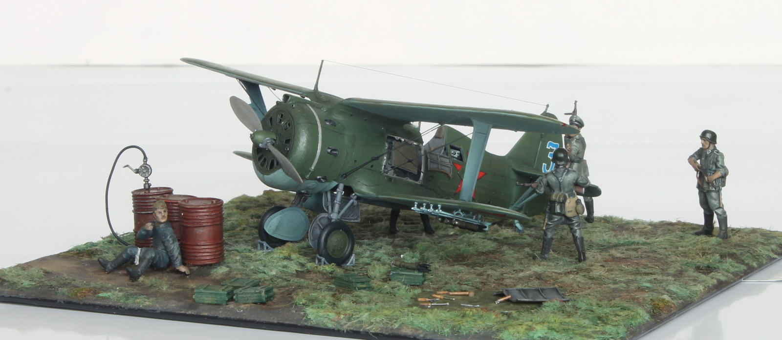 Советский раненый авиатехник - из звездовского набора авиатехники ВВС РККА. Поза опять же переделана.